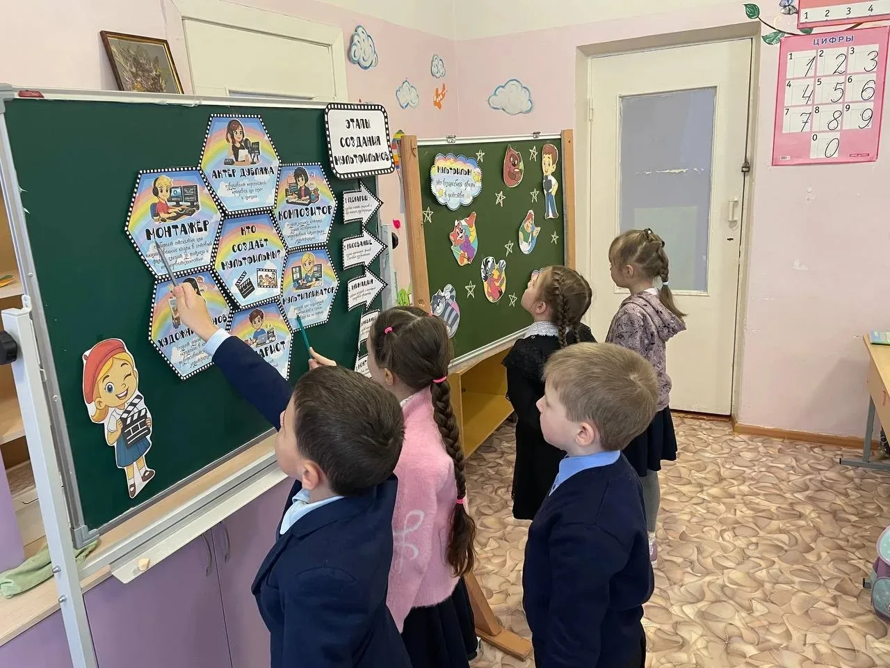В рамках цикла внеурочных занятий «Разговоры о важном» прошло занятие на тему «Как создают мультфильмы?» Оно проходило в форме познавательной беседы с элементами просмотра видеоматериалов, обсуждения и практической деятельности. В начале урока учащиеся поделились своими впечатлениями о любимых мультфильмах, героях и сюжетах. Дети активно включились в разговор, с интересом рассказывали о том, какие мультфильмы они смотрят дома, чем им нравятся персонажи. В ходе занятия ребята узнали, что мультфильм создается не сразу, а проходит несколько этапов: придумывание идеи и сюжета, создание сценария, разработка образов героев, рисование кадров или изготовление фигурок, озвучивание персонажей, монтаж и финальная обработка. Особый интерес вызвал рассказ о профессиях людей, работающих над мультфильмом: художников, сценаристов, режиссеров, аниматоров, актеров озвучивания, композиторов. В завершение урока дети сделали вывод, что мультфильм – это результат совместного труда большой команды, где каждый вносит свой вклад
