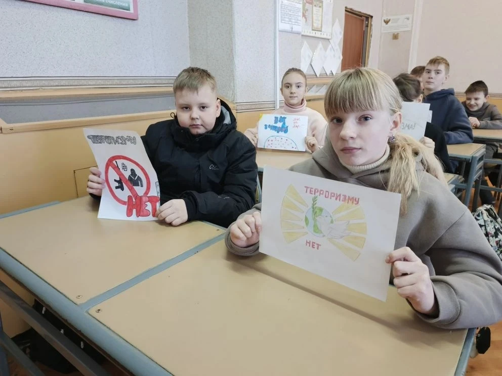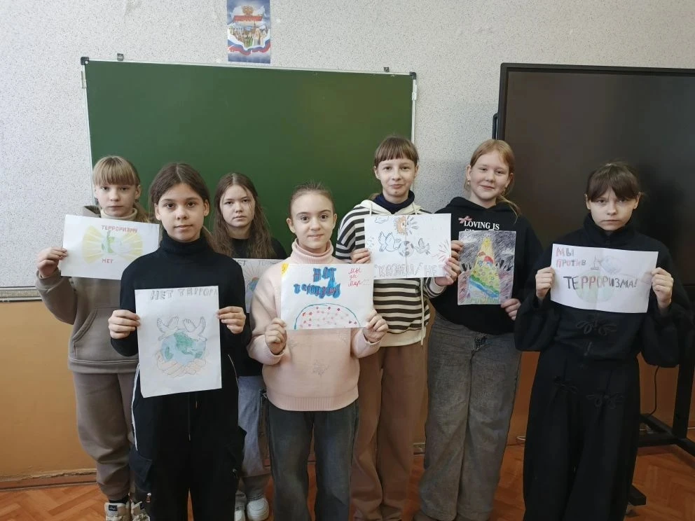 Классный руководитель рассказала школьникам об определении понятия «терроризм», о том, какую угрозу несет терроризм всему человечеству. Напомнила о крупных терактах последних десятилетий.