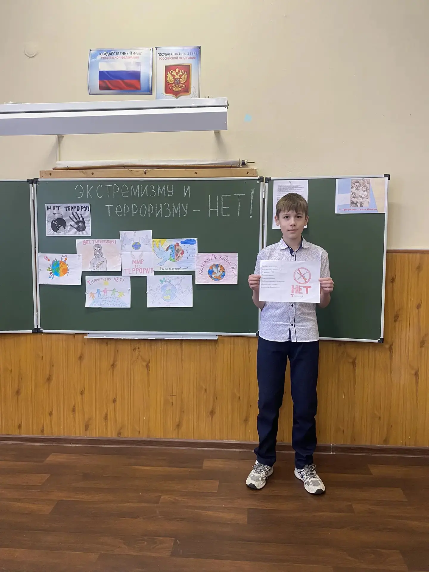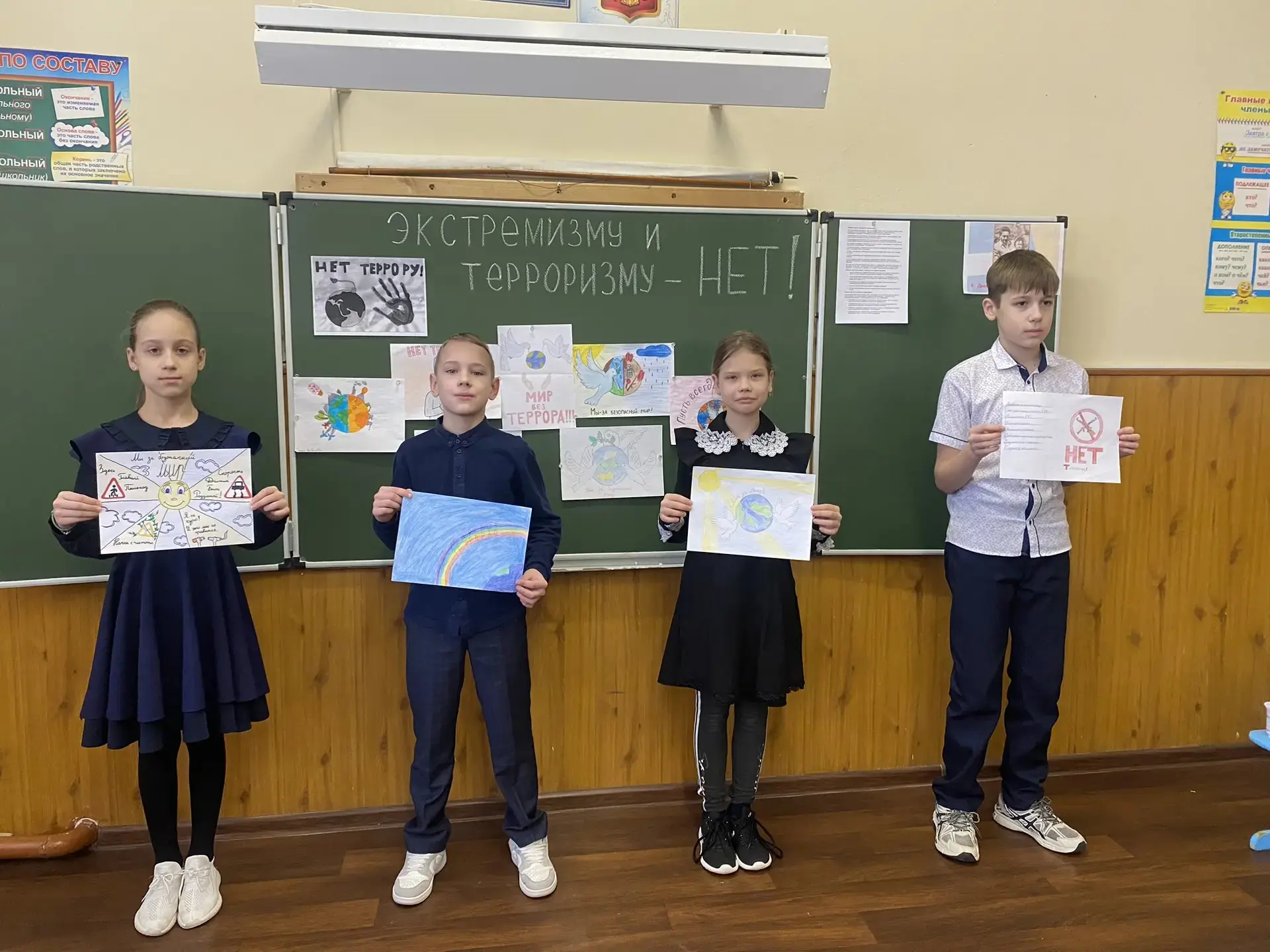 В целях профилактики терроризма и воспитания толерантности в 1 классе прошёл классный час на тему «Мы против террора!». Учащиеся узнали, что такое терроризм и как ему противостоять. Узнали, как люди, страны, государства борются с этим злом. Дети познакомились с основными правилами поведения в условиях угрозы терактов. Учащиеся сделали вывод, что важно уважать других людей и избегать агрессии и ненависти. В заключении дети нарисовали плакаты «Я за мир!»