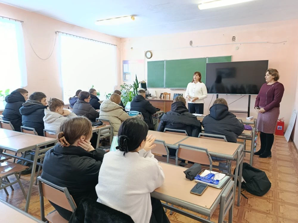 Сегодня состоялась важная встреча выпускников нашей школы с представителем Краснодарского высшего военного училища имени Генерала армии им. С.М. Штеменко.