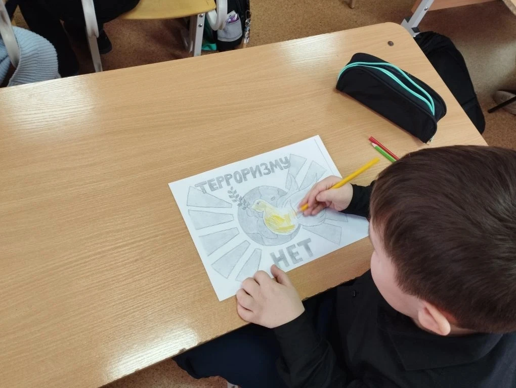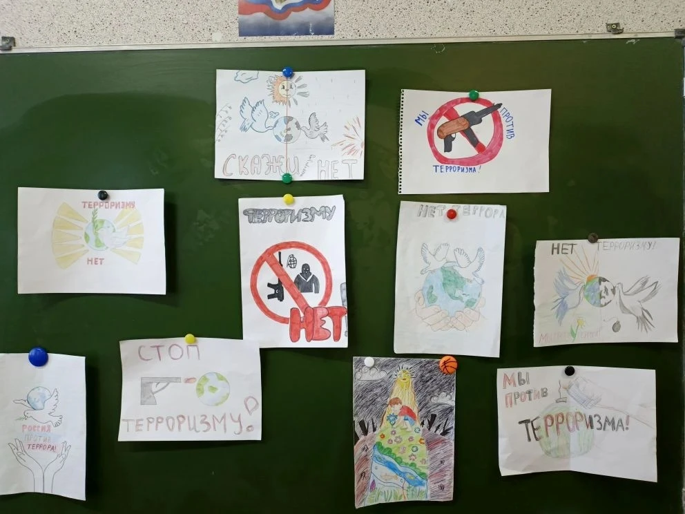 В пятом классе был организован конкурс рисунков на тему: " Нет терроризму!"