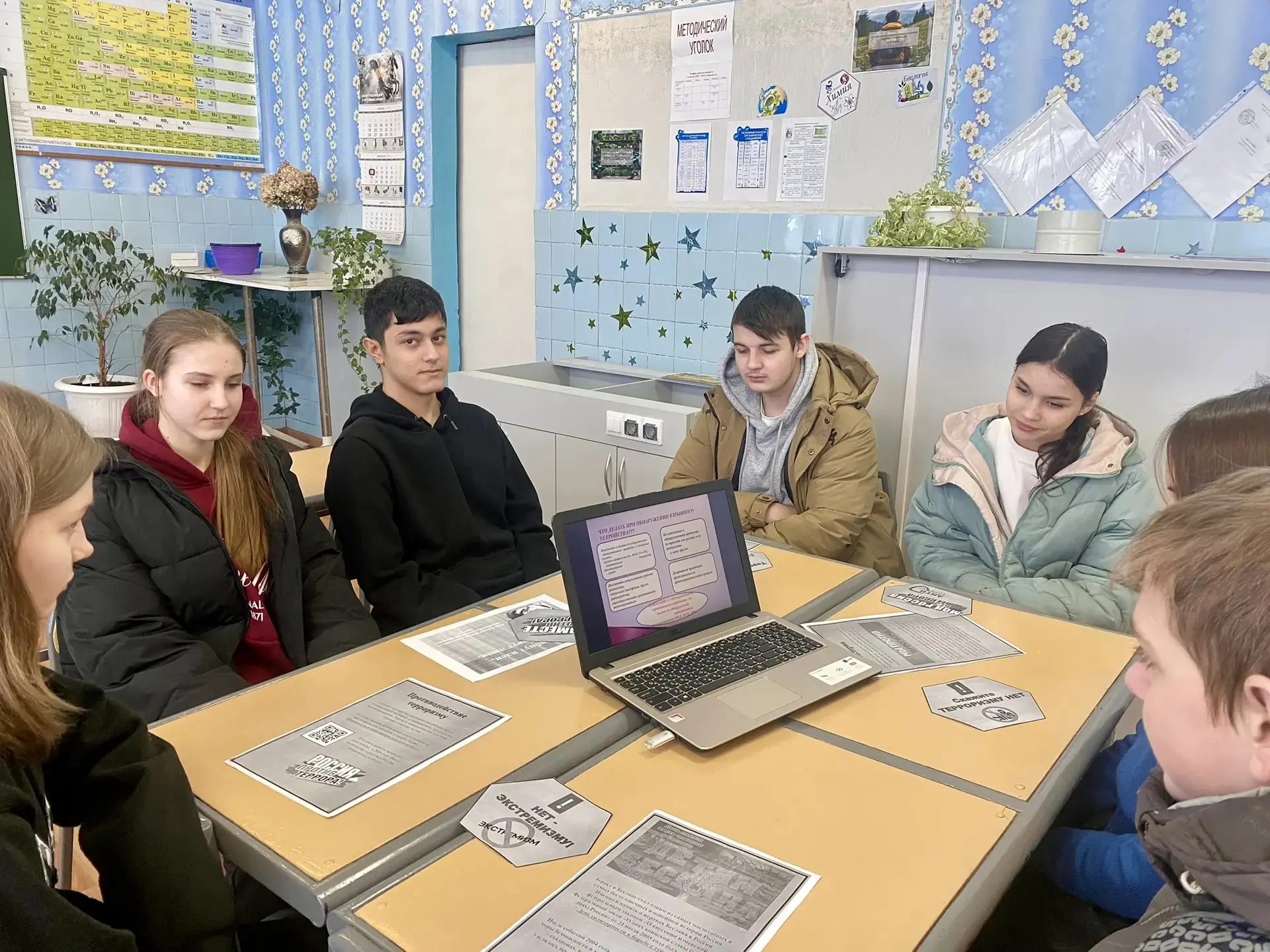 Особое внимание было уделено правилам поведения во время возникновения террористической ситуации, обнаружения подозрительных предметов. Вместе с ребятами обсудили насколько важно проявлять гражданскую бдительность, чтобы не стать жертвой теракта. А также поговорили о том, как уберечь себя и своих близких в случае угрозы террористического акта.