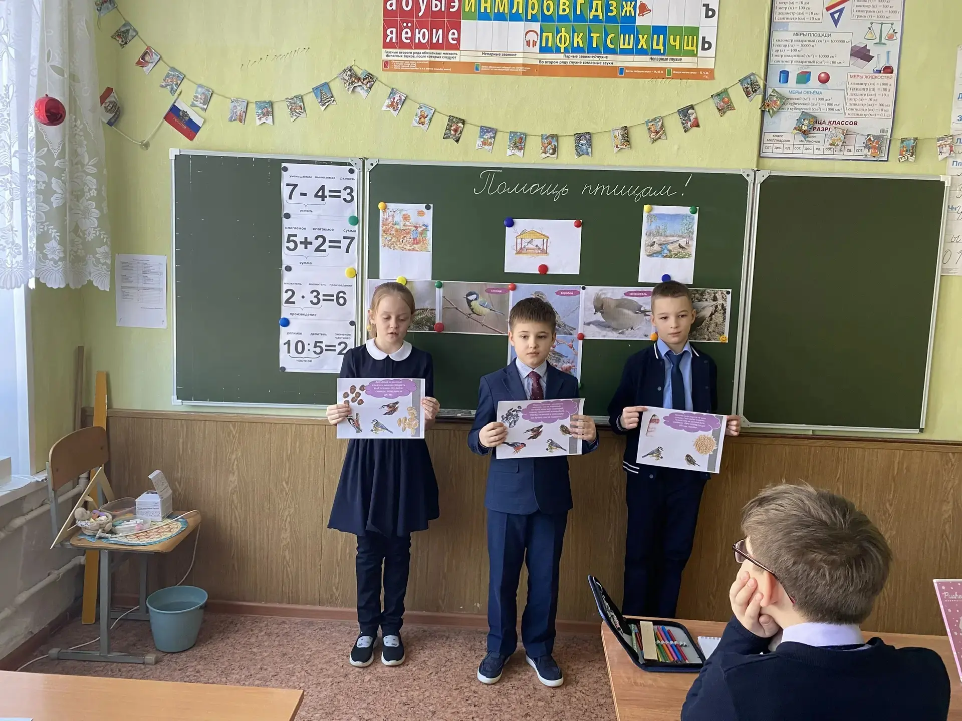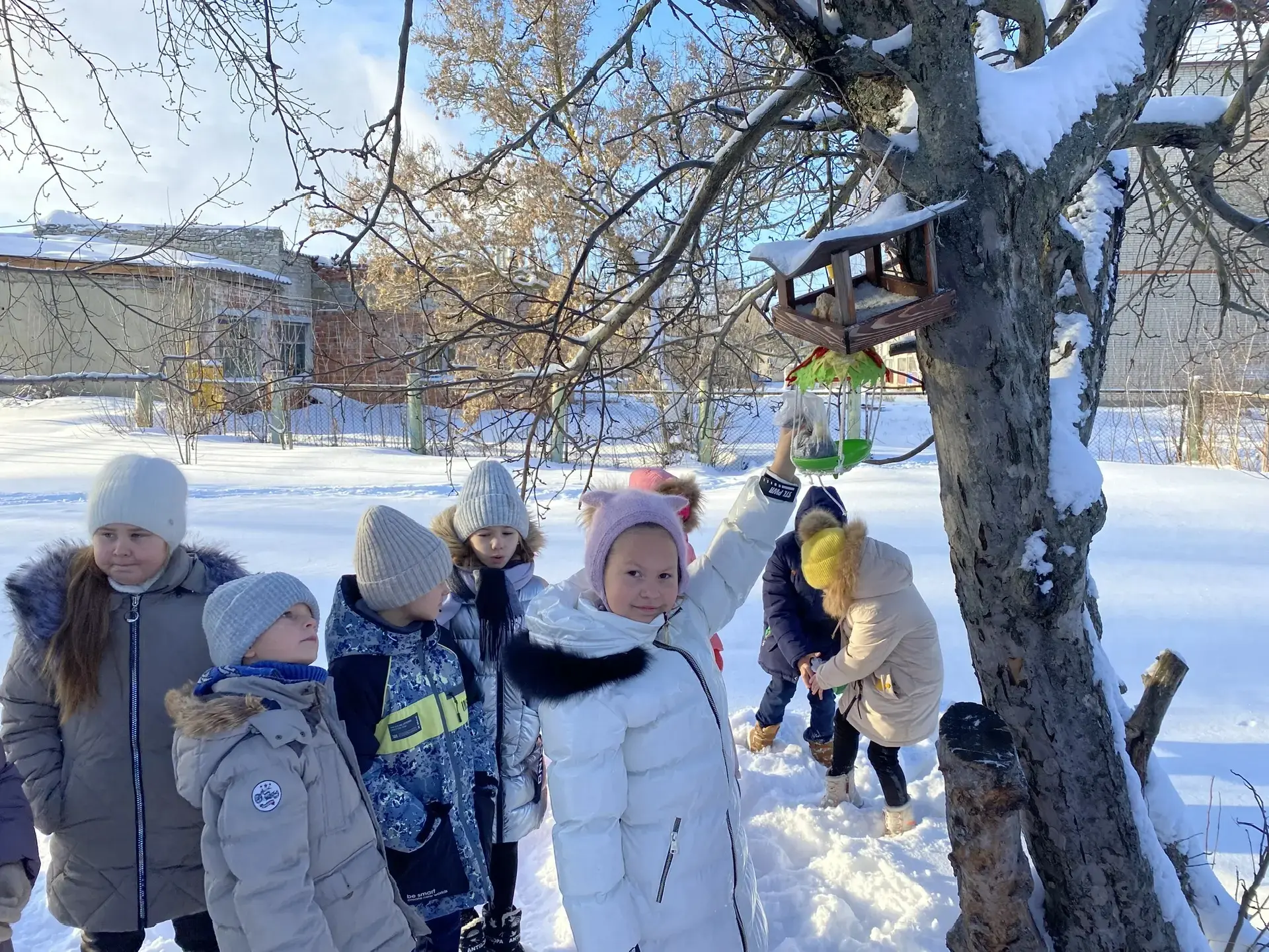 развесили готовые кормушки на территории школы, чтобы поддержать пернатых друзей.