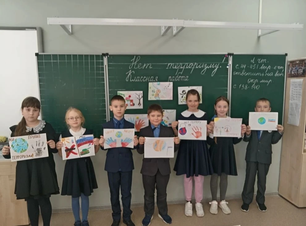 Сегодня 15 января в 3 классе прошла выставка рисунков на тему "Нет терроризму! "