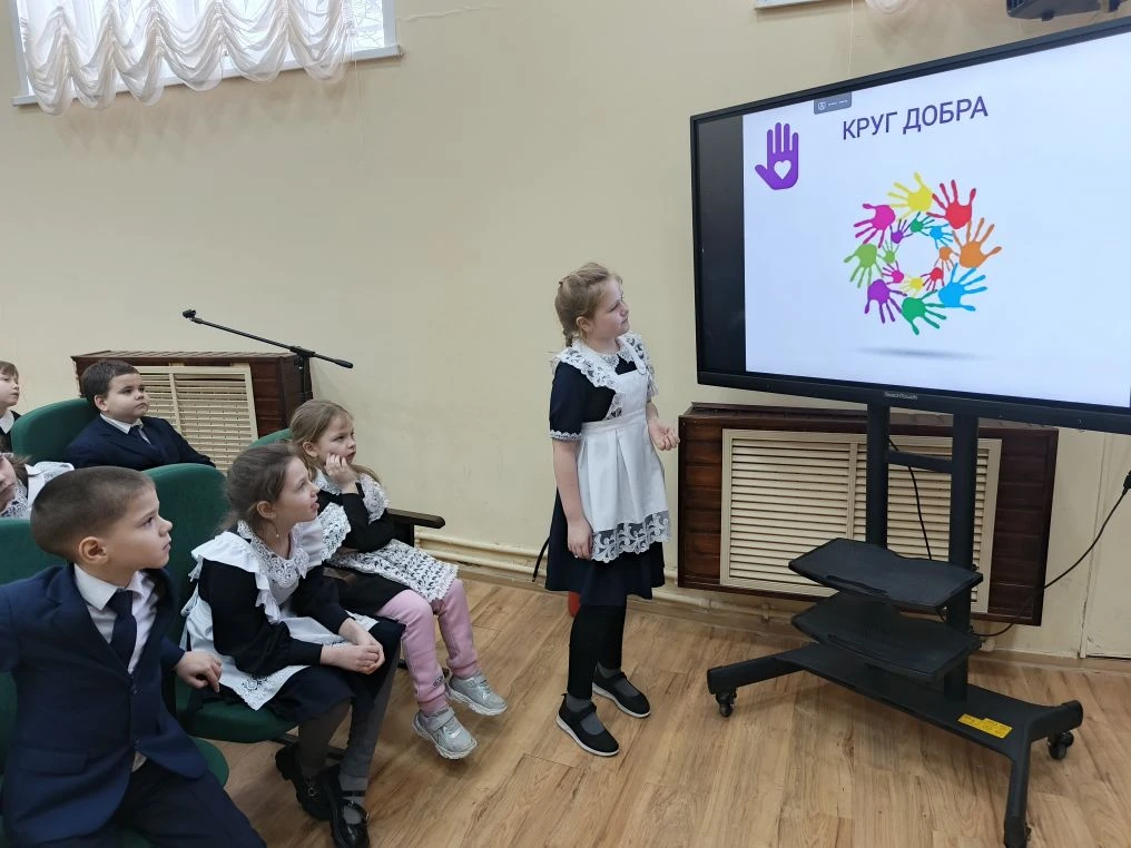 16 января у первоклассников прошло первое занятие по треку «Орлёнок-доброволец». Дети поиграли в игру «Доброе сердце», рассказали про добрые поступки и станцевали танец дружбы.
