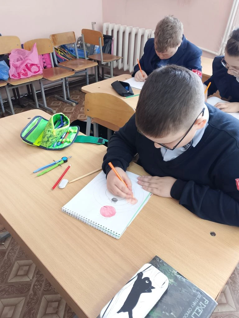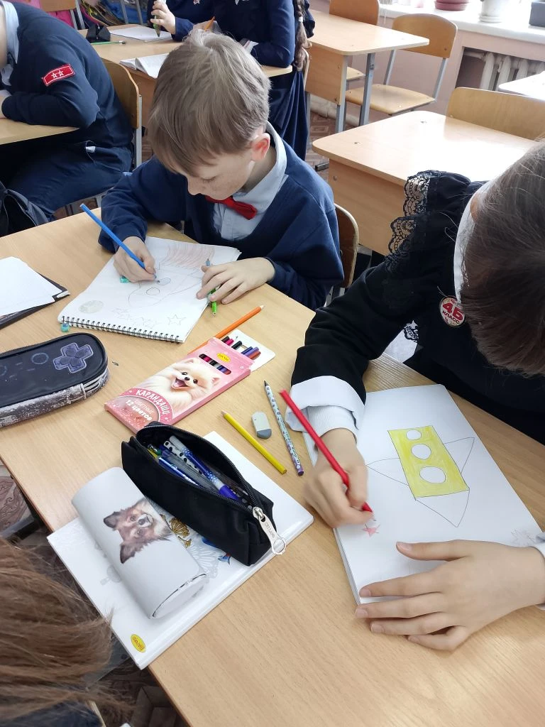 📎В рамках Недели Космоса в 4 классе прошел классный час на тему: «12 апреля – День Космонавтики». В ходе беседы ребята познакомились с историей развития отечественной космонавтики, с теми, кто внёс свой вклад в покорение Вселенной. А творческое задание : нарисовать нашу вселенную, очень понравился ребятам. В своих работах дети изобразили планеты, космические объекты.