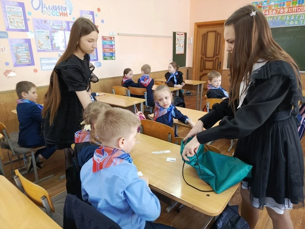 Старшеклассницы 8 класса напомнили первоклассникам, какими качествами должен обладать настоящий защитник природы, и подготовили интересные задания.