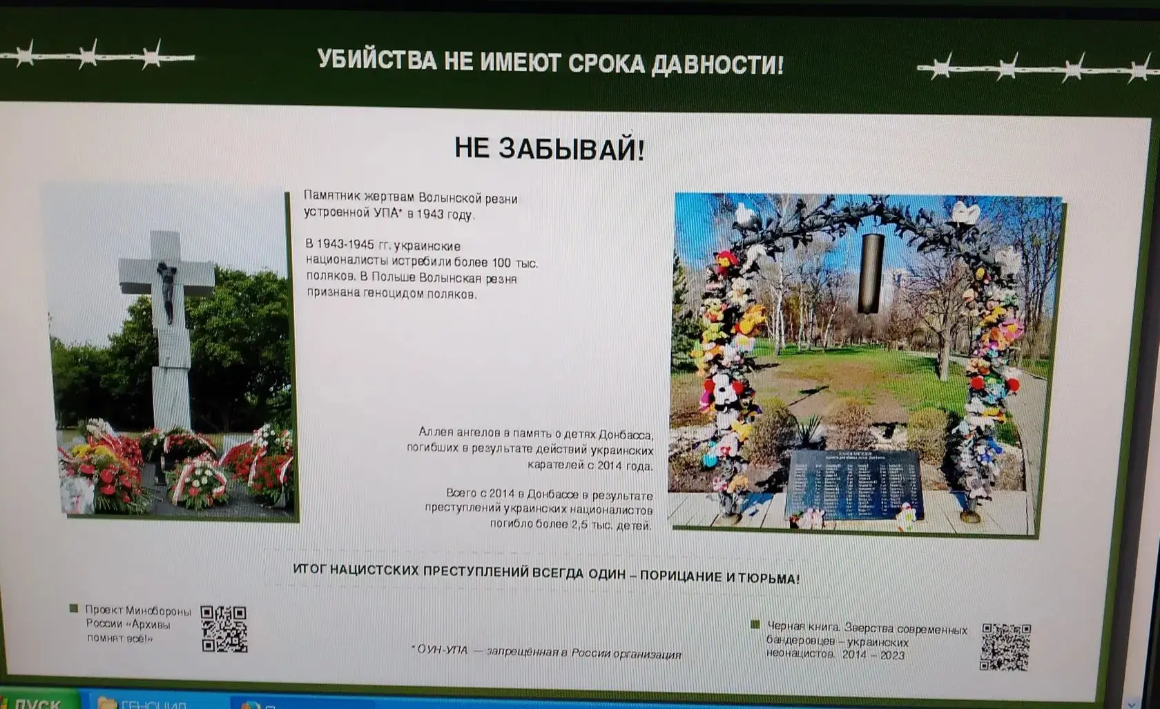 📌В преддверии Всероссийской декады единых действий, приуроченной ко Дню памяти жертв геноцида советского народа в годы Великой Отечественной войны, во 2 классе прошел классный час "Без срока давности". Второклассники узнали, что означает страшное слово "геноцид", узнали о преступлениях, совершенных фашистами в годы Великой Отечественной войны против советского народа, на плакатах рассмотрели многочисленные доказательства преступлений украинских националистов в годы Великой Отечественной войны и украинских неонацистов сегодня.