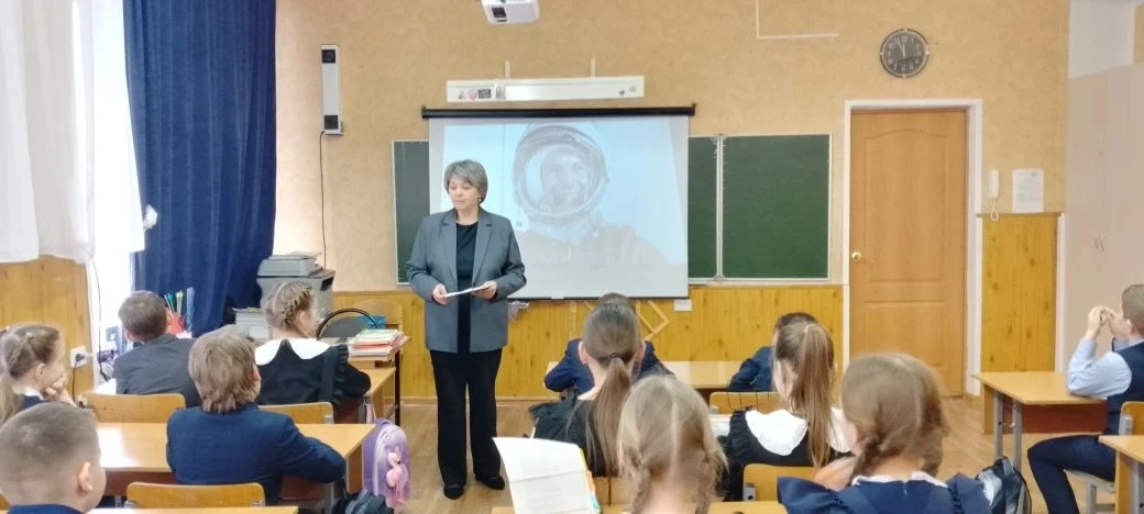 🚀Ко Дню космонавтики с учащимися 4 класса сотрудник Центральной детской библиотеки Логинова Татьяна Егоровна провела урок-портрет "Сын земли и звезд", приуроченный к 65-летию полета Ю. А. Гагарина в космос.