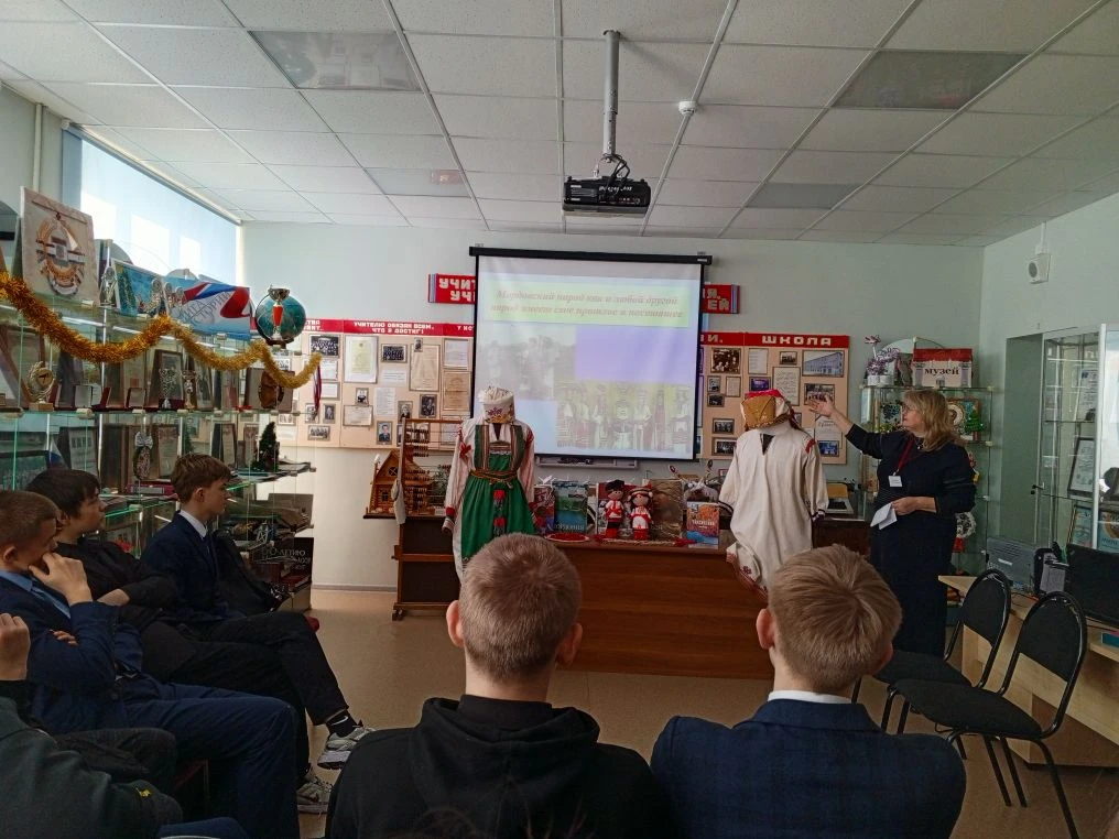 15 января руководитель школьного краеведческого музея провела для учащихся 9 класса музейный час "Мордовский автономной округ". Светлана Владимировна рассказала ребятам как образовалась республика, поведала историю и значение флага и герба Мордовии. Так же ребята узнали об особенности быта родного народа, об известных людях и о многих интересных моментах из истории своей республики. Ребятам с интересом слушали Светлану Владимировну и задавали ей вопросы.