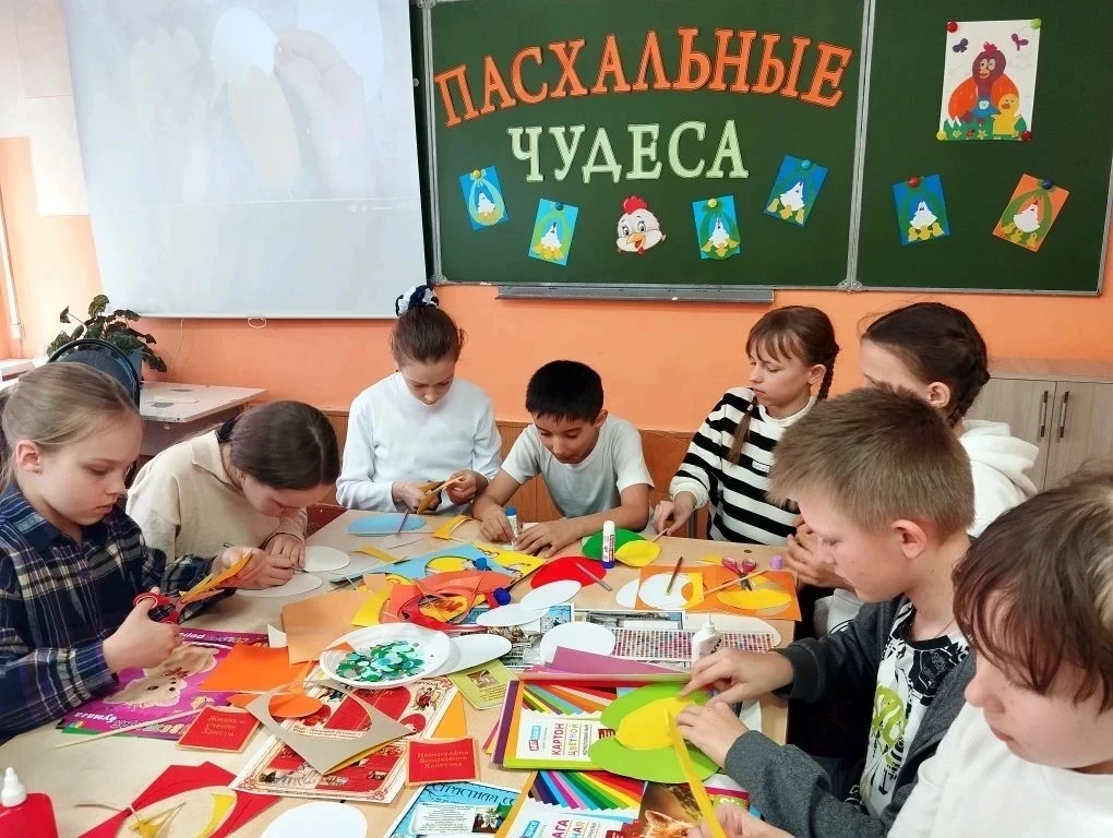 Кульминацией «Пасхальных чудес» стал мастер-класс по изготовлению символа праздника — Пасхального яйца с цыплёнком. Ребята с увлечением взялись за работу: они создавали поделки, в которых цыплёнок мог двигаться внутри яйца.