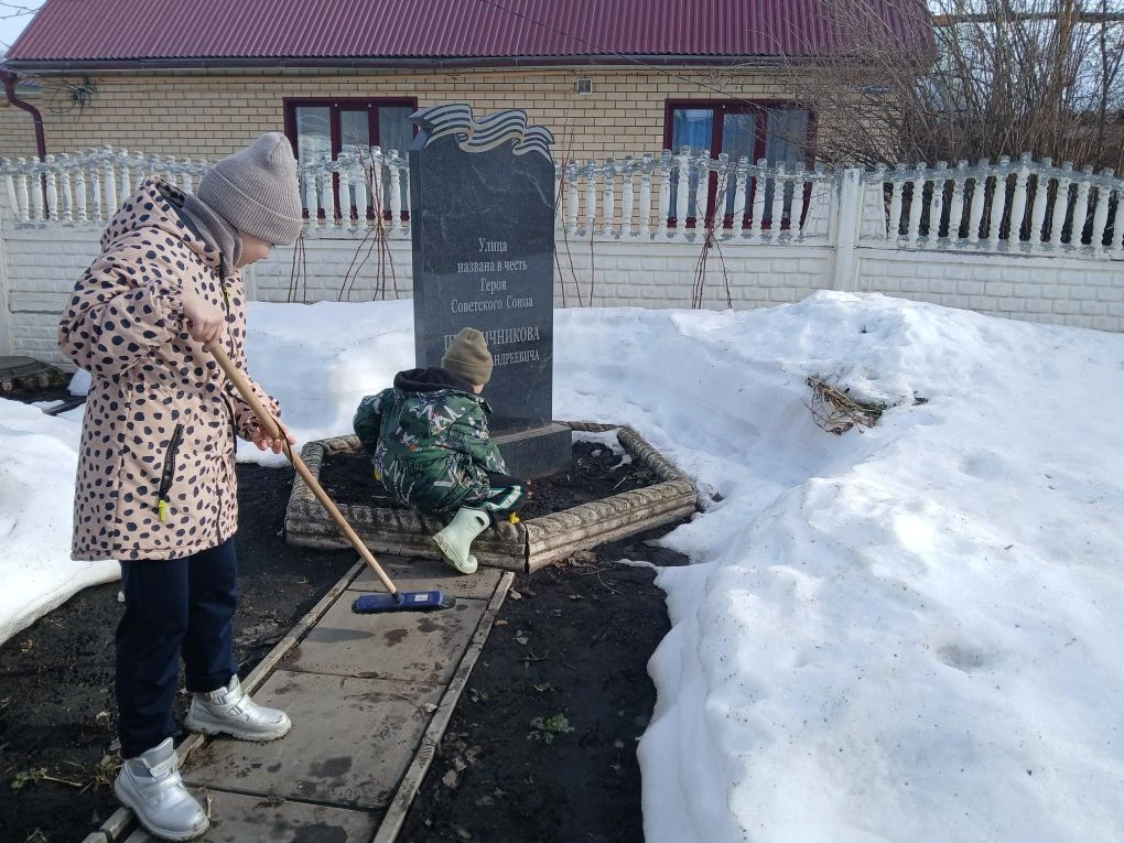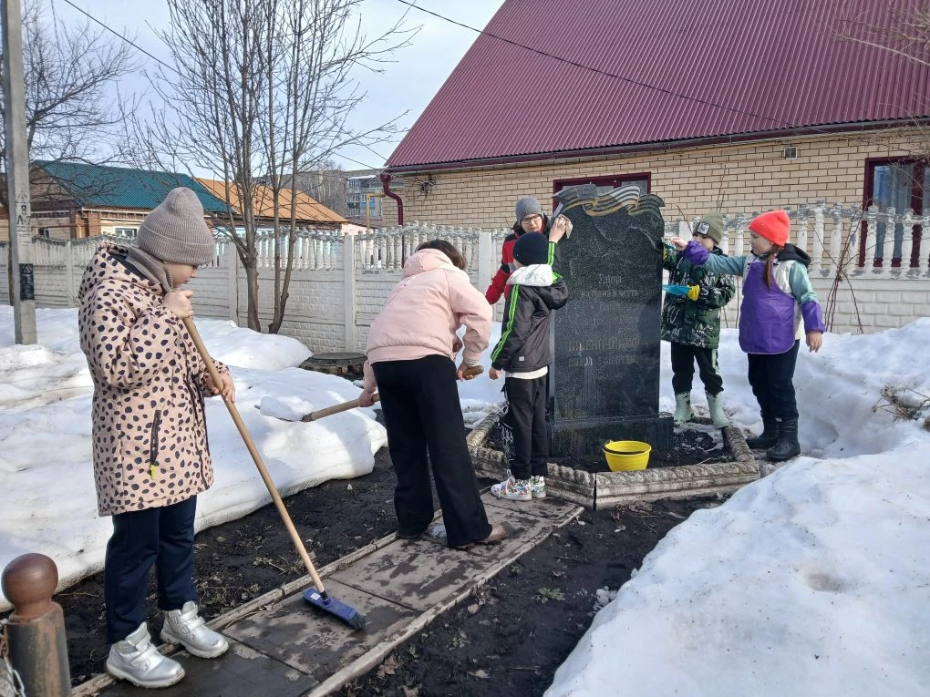 Весна - это время не только пробуждения природы, но и время больших добрых дел. С наступлением этого времени года памятники требуют ухода и приведения в порядок. Благоустройство памятных мест - это та малая часть наших дел, с помощью которых мы выражаем свою благодарность всем тем, кто отдал свою жизнь ради нас, ради мирного неба над головой.