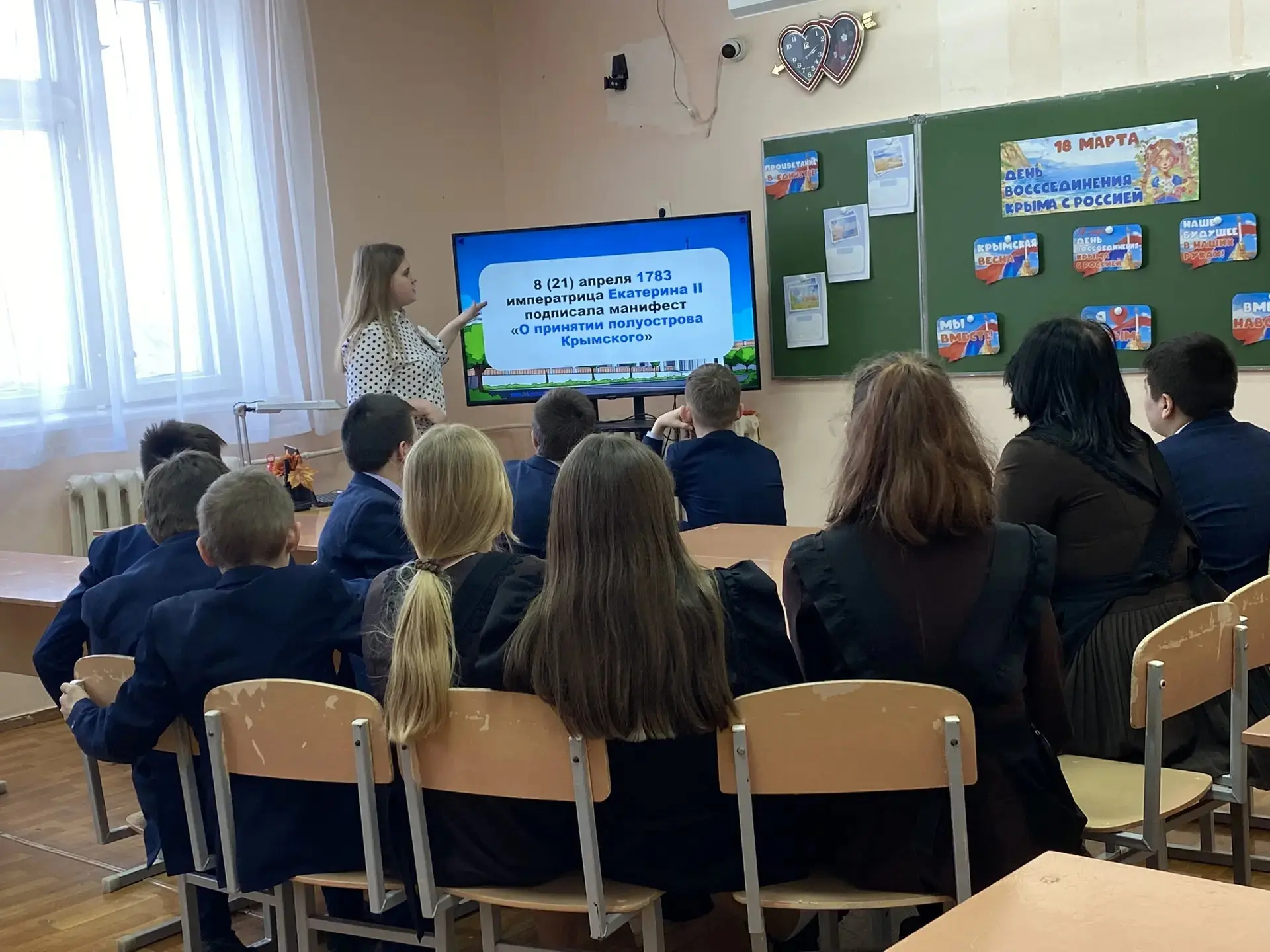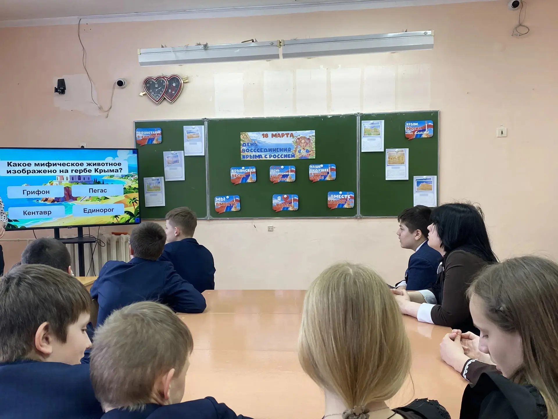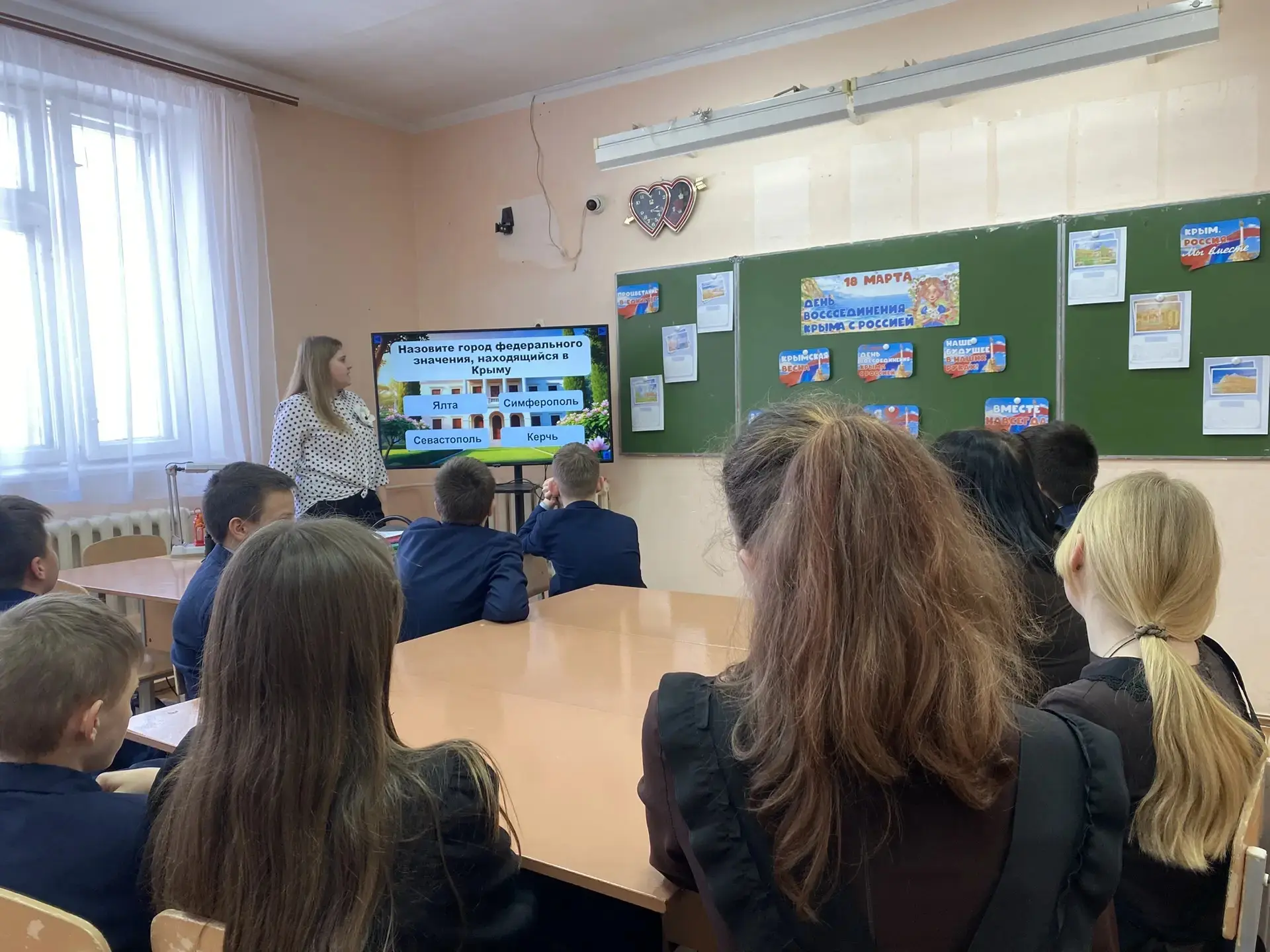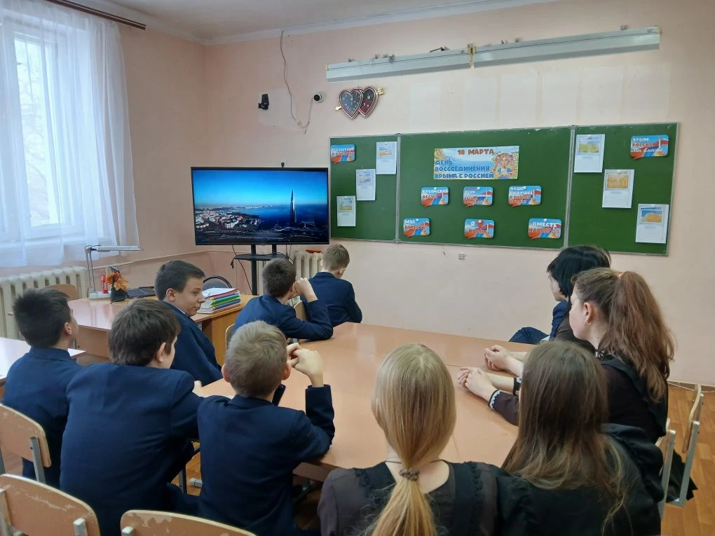 Советник директора по воспитанию Игольникова Т.С. организовала для ребят виртуальную экскурсию по полуострову Крым. Дети узнали о долгом и интересном историческом пути Крыма и города-героя Севастополя. Яркая презентация и видеосюжеты помогли учащимся расширить их кругозор и прочувствовать атмосферу этого уникального региона. Школьники активно участвовали в обсуждении, задавали вопросы и делились своими знаниями.