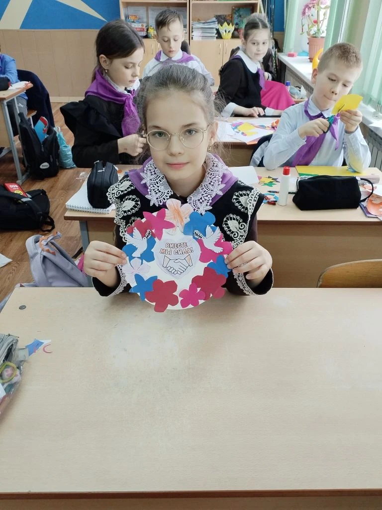 18 марта отмечается День воссоединения Крыма и Севастополя с Россией. Учащиеся 3А класса познакомились с историей этого важного события и изготовили "Венок" из первоцветов символ дружбы и единения наших народов.