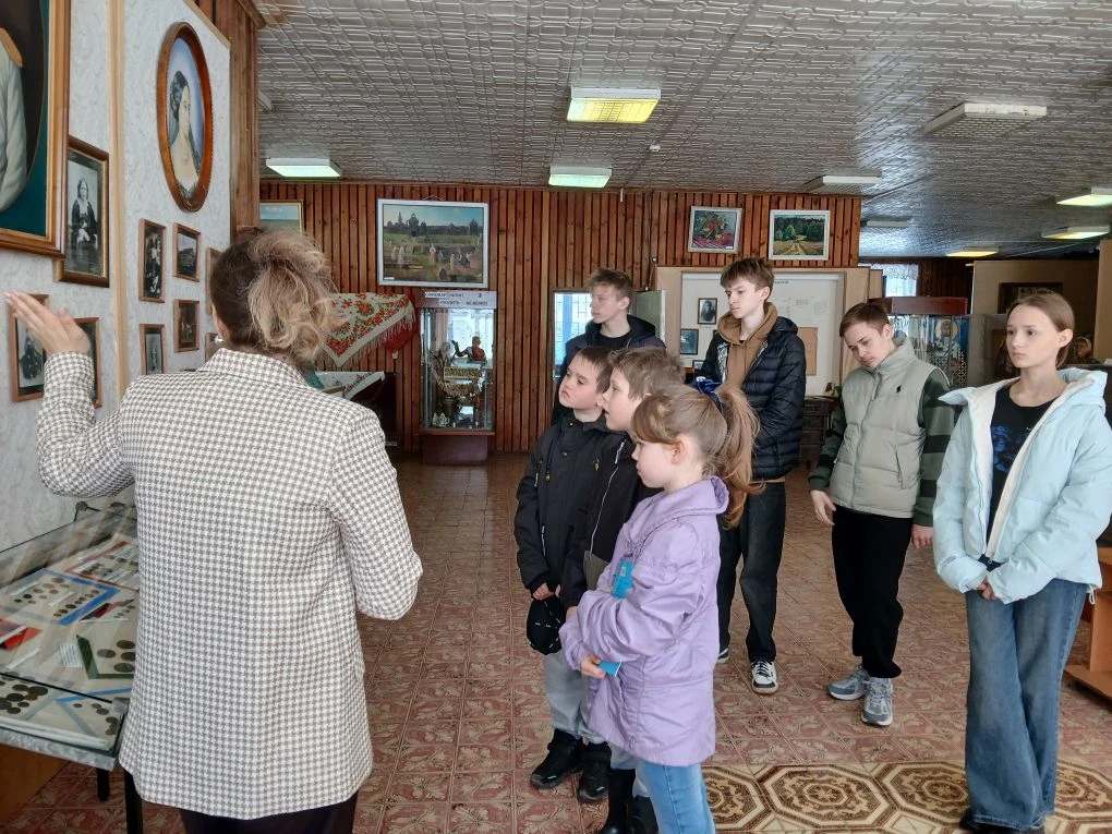Научный сотрудник музея Рудакова Анастасия Александровна провела для детей обзорную экскурсию по залам музея с разными экспозициями, подробно рассказывая о каждом экспонате и делясь интересными фактами, помогающими понять и увидеть развитие города и района.