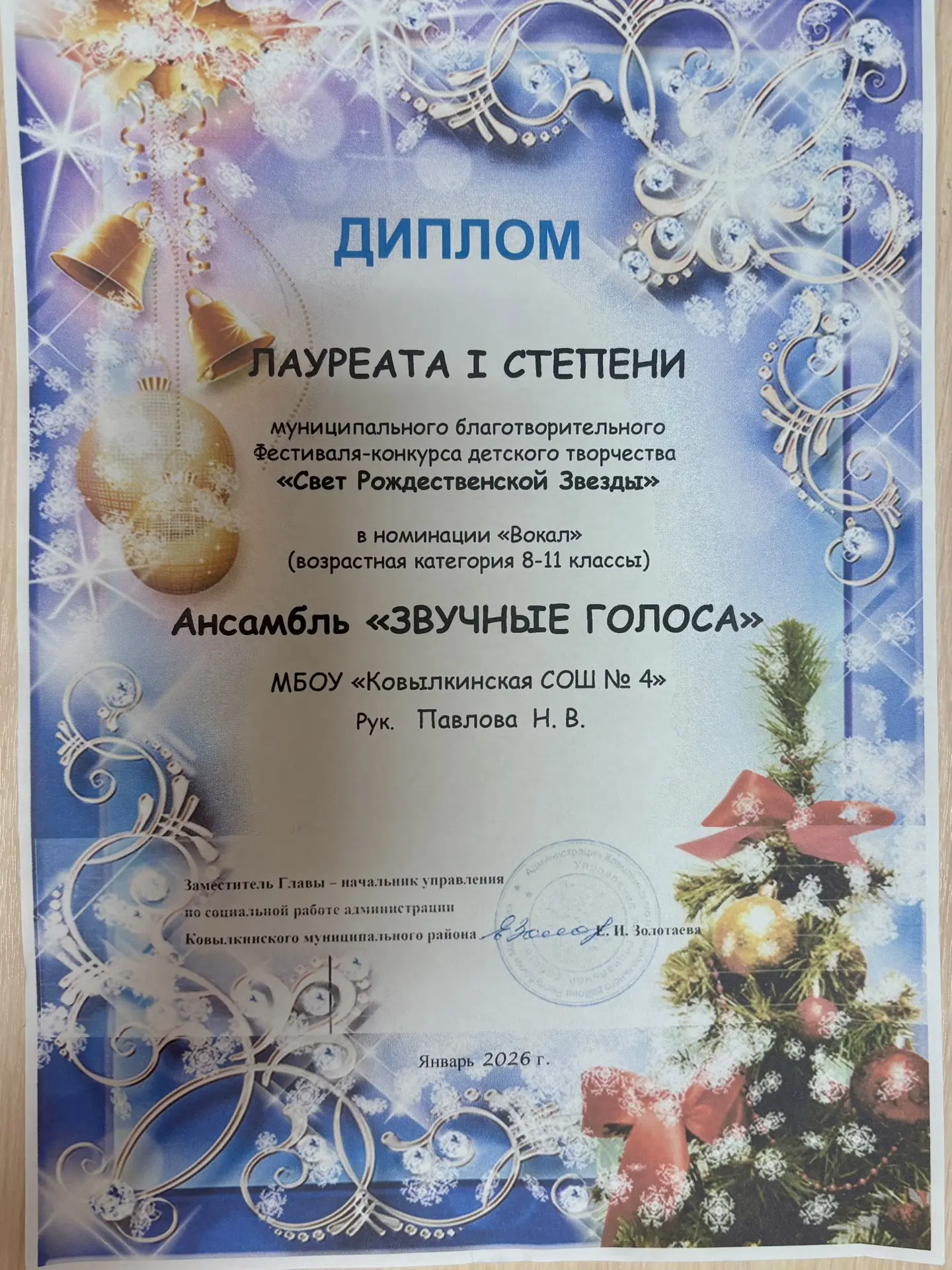 Наш вокальный ансамбль «Звучные голоса» (руководитель — Павлова Н.В.) завоевал высокую награду — звание Лауреата I степени! 🎤✨