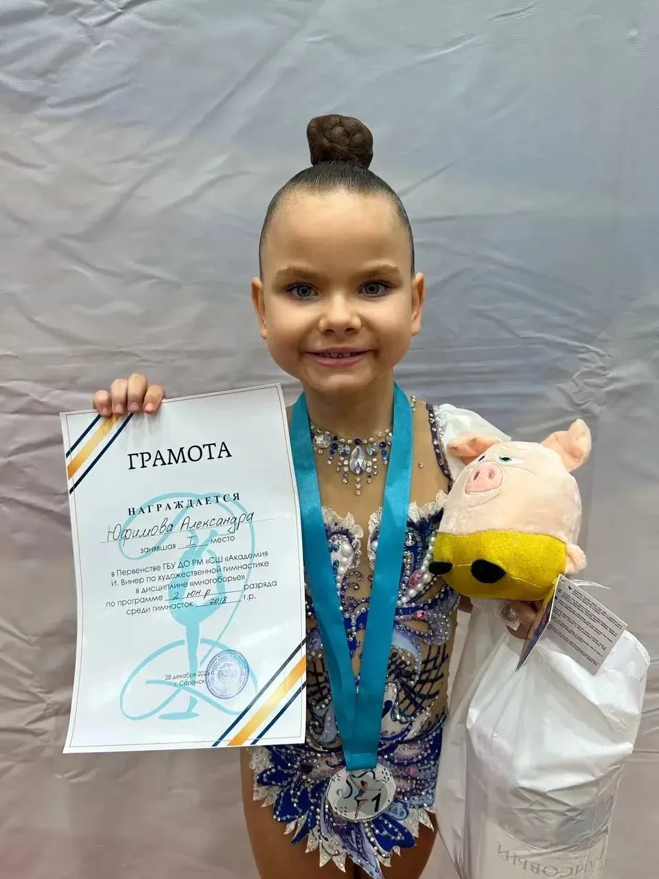🎉🏆 Поздравляем нашу ученицу 1 "Б" класса Юфимову Александру с блестящей победой на первенстве в СШ «Академия И. Винер по художественной гимнастике»! 🌟