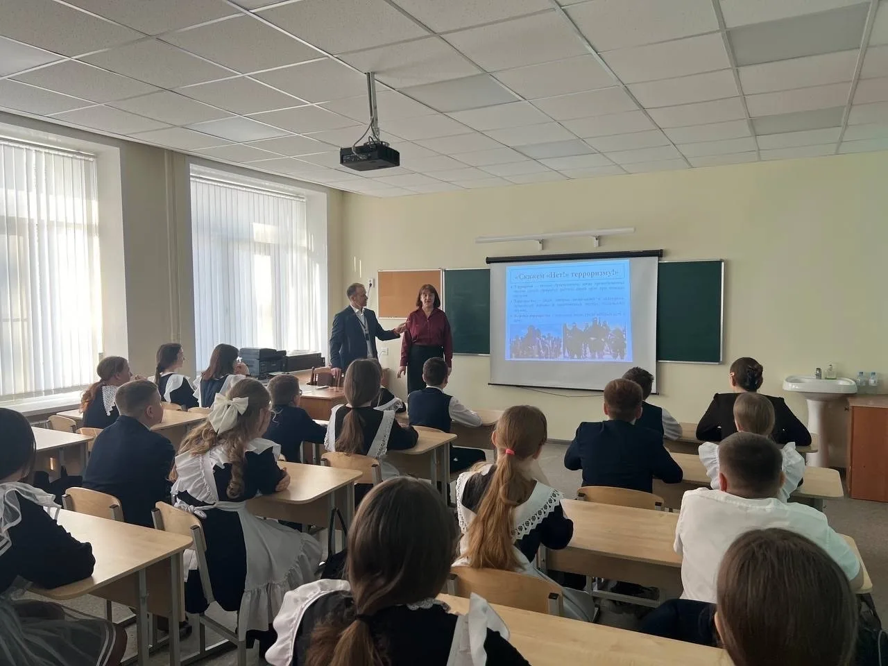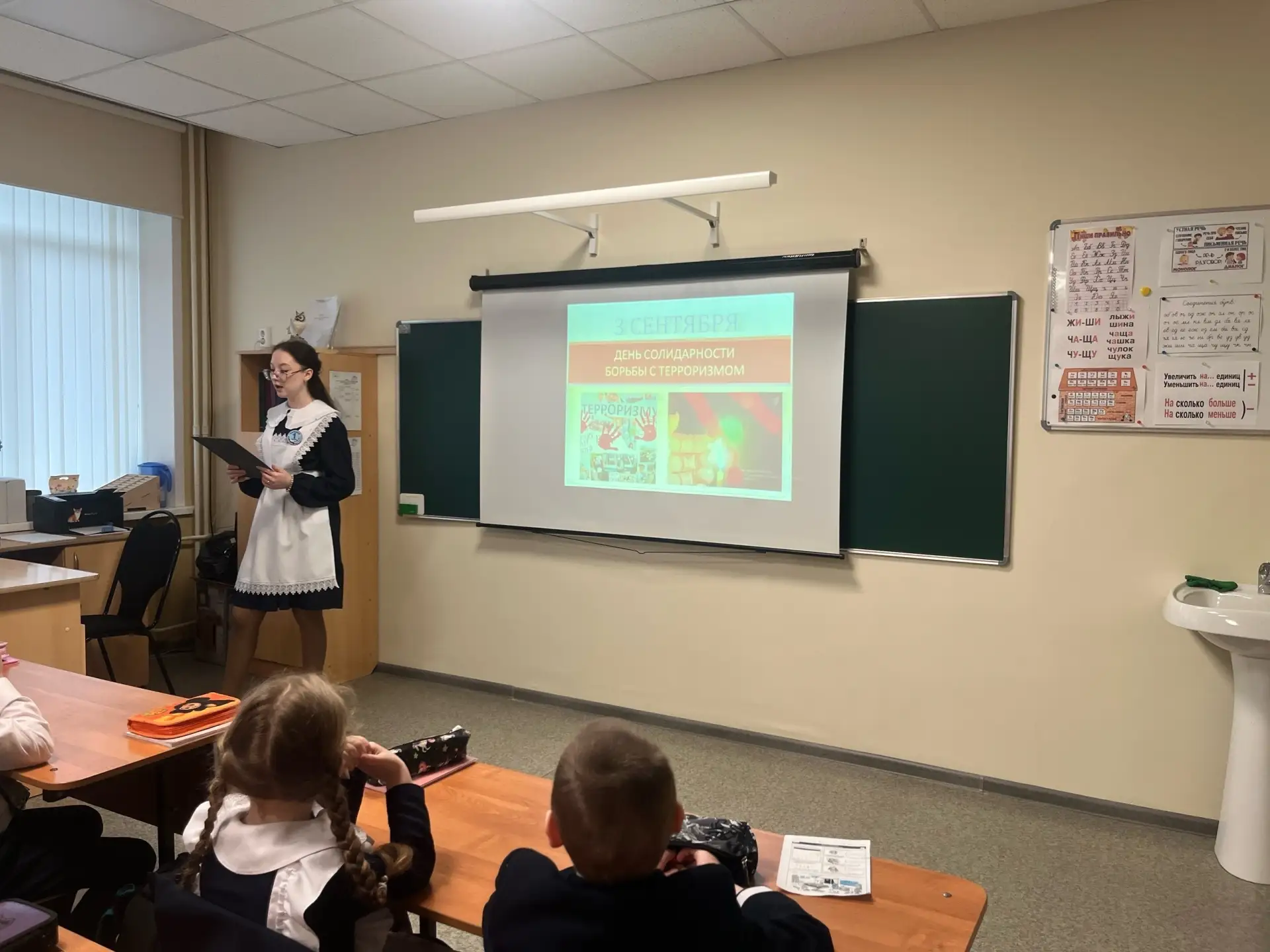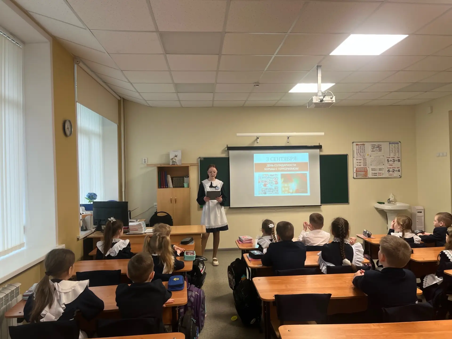 Особое внимание на уроках уделили практике: старшеклассники вместе с младшими школьниками разобрали конкретные кейсы — от обнаружения забытой сумки в коридоре до подозрительных сообщений в мессенджерах. Каждый класс получил памятку с алгоритмом «Три «Н»: не трогай, не подходи, не паникуй — сообщи взрослому». Кроме того, обучающиеся 1-4 классов во время проведения урока вспомнили о дне солидарности по борьбе с терроризмом - 3 сентября.