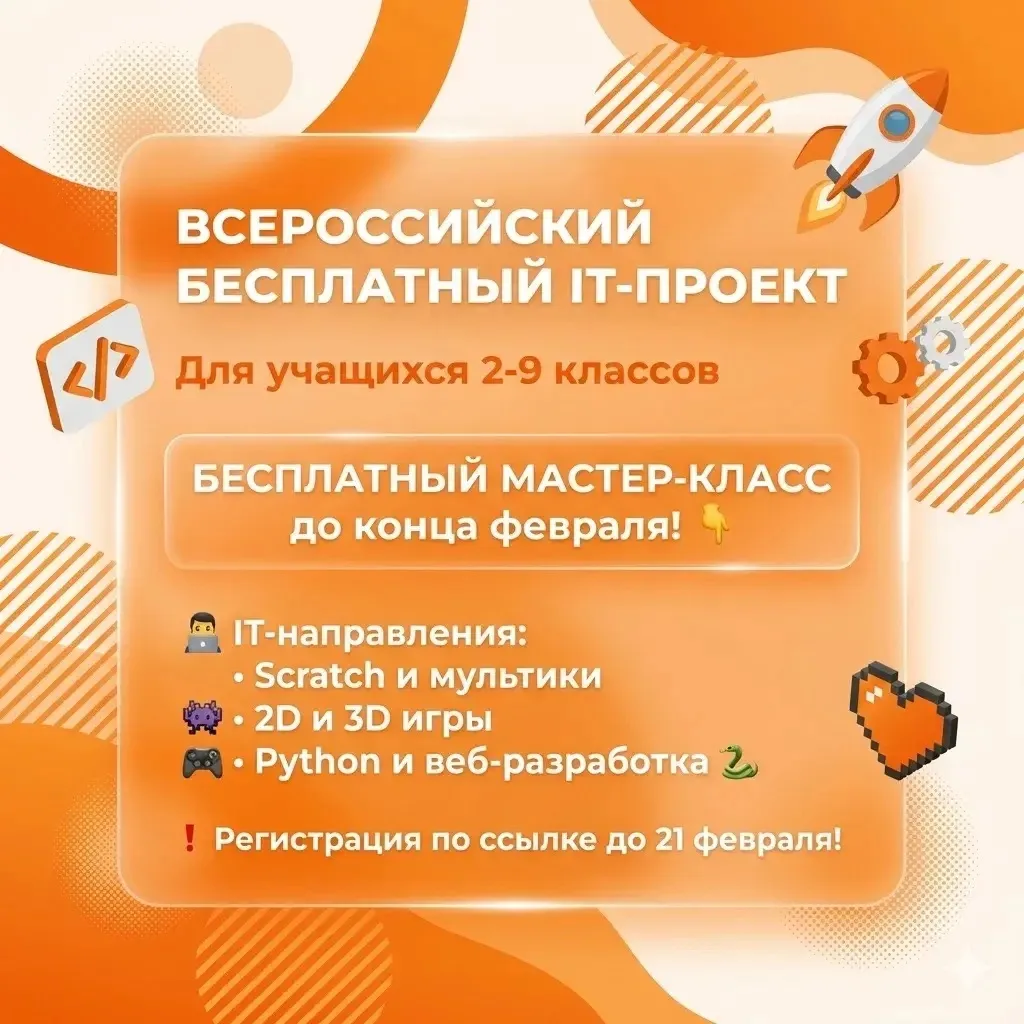 Уважаемые родители и учащиеся! Обращаемся к Вам по поводу Всероссийского бесплатного проекта по развитию IT среди обучающихся 2-9 классов.