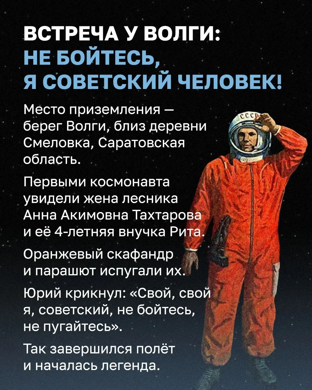 Интересные факты о первом пилотируемом полете и герое, проложившем путь к звездам, – в наших карточках. Поехали! ➡️