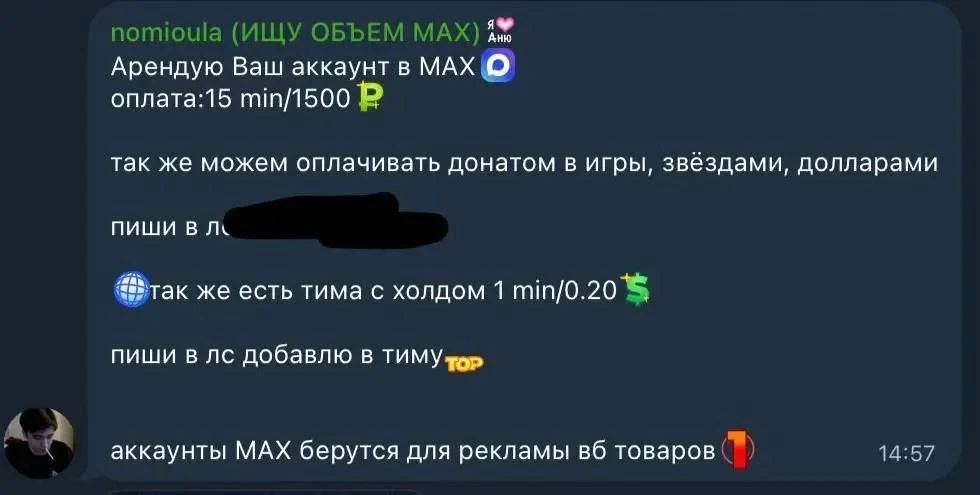 ❗️Мошенники массово арендуют аккаунты MAX у школьников и студентов, чтобы обманывать россиян