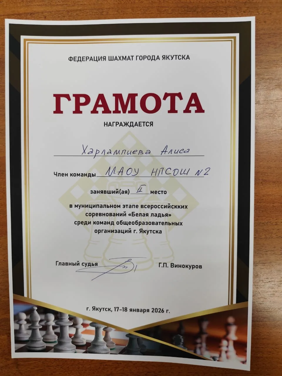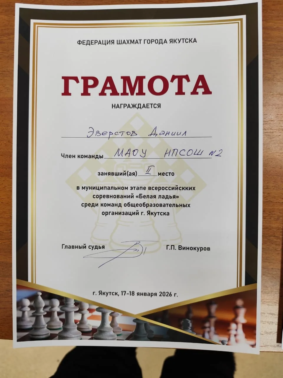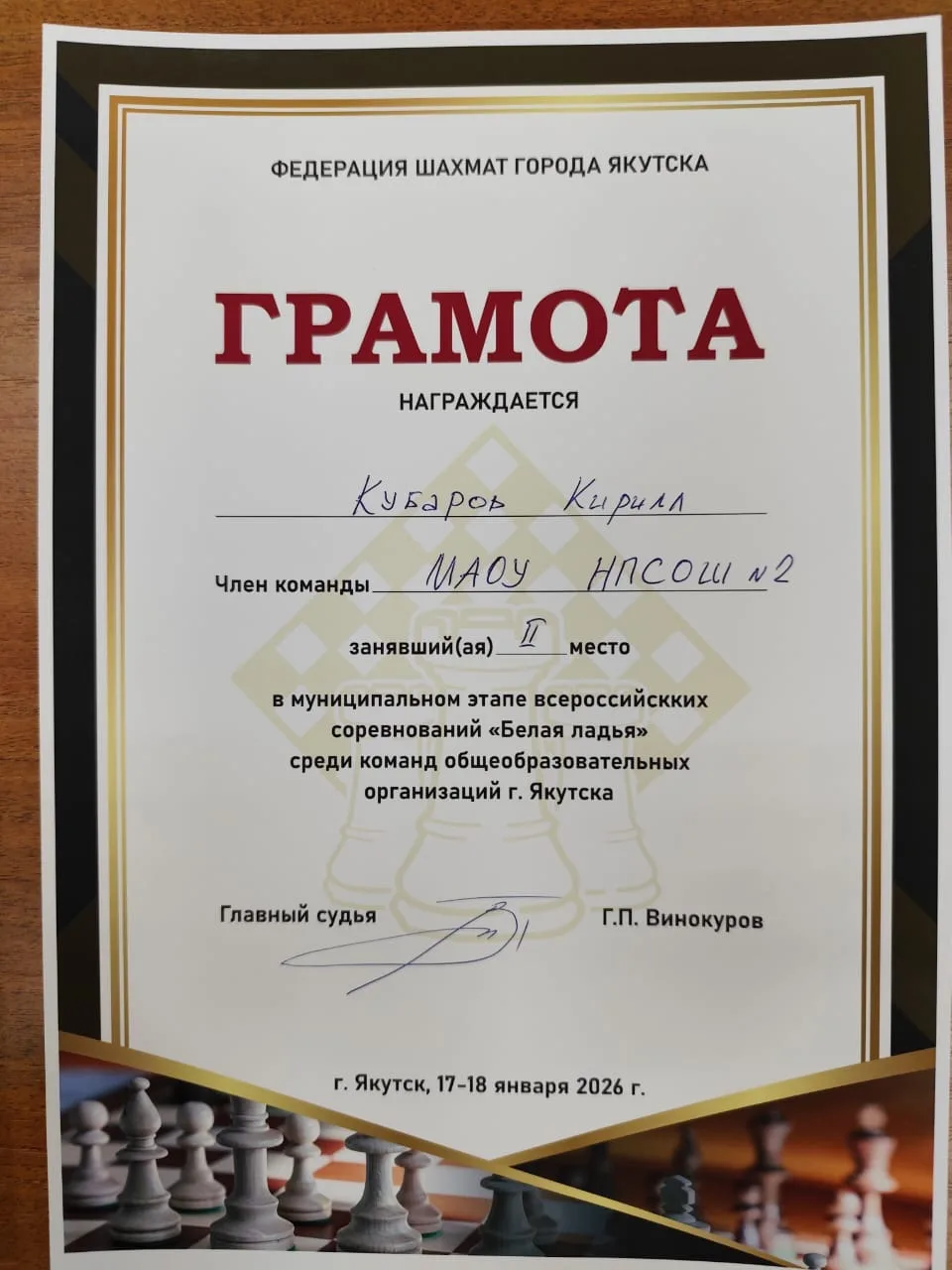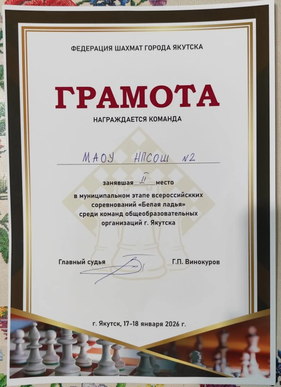 Наши ребята с первого тура играли с большим старанием и до самого конца находились на 1–2 позициях вместе с ровной по составу командой ЯГНГ. Вплоть до последнего тура было неизвестно, какая команда станет победителем. В последнем туре наши ребята выдали почти максимум: выиграли у команды 9-й школы со счётом 3,5:0,5. Отличился Даниил Эверстов, сыграв вничью с очень сильным шахматистом Григорьевым Семёном. Тем не менее, отстав всего на пол-очка, наши дети достойно заняли 🥈 второе место 👏🏻👏🏻👏🏻, тем самым обеспечив себе путевку на участие в региональном этапе турнира 👍🏼🎯, который пройдёт уже скоро — со 2 по 6 февраля 2026 года.