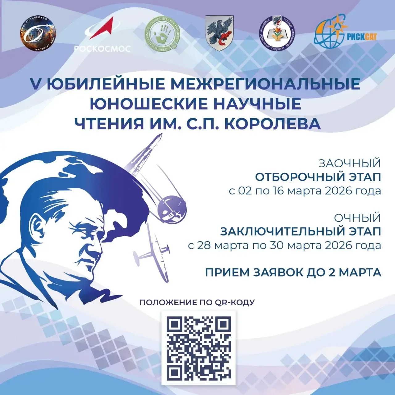 🚀Приглашаем принять участие в V юбилейных межрегиональных юношеских научных чтениях им. Сергея Павловича Королева