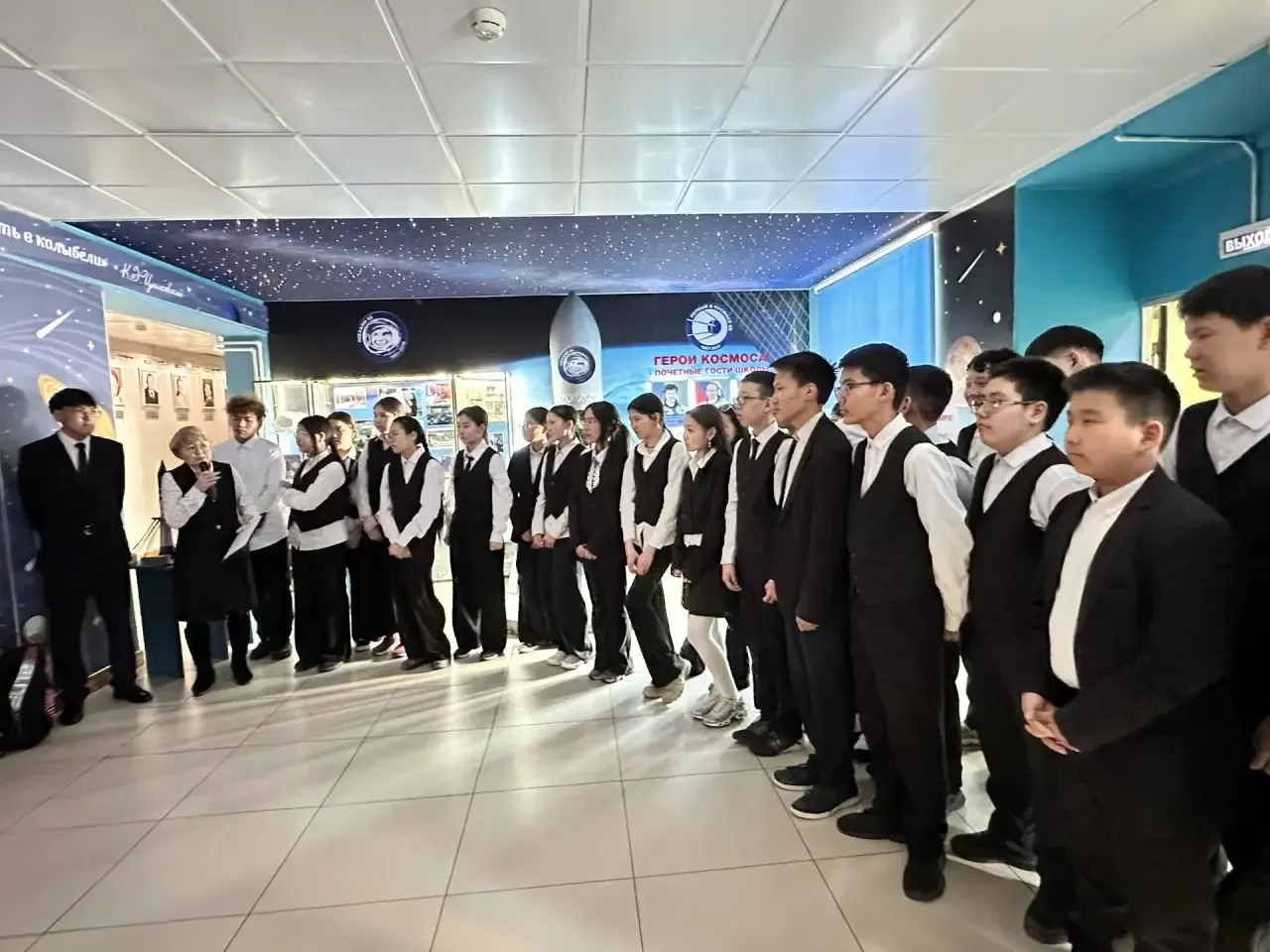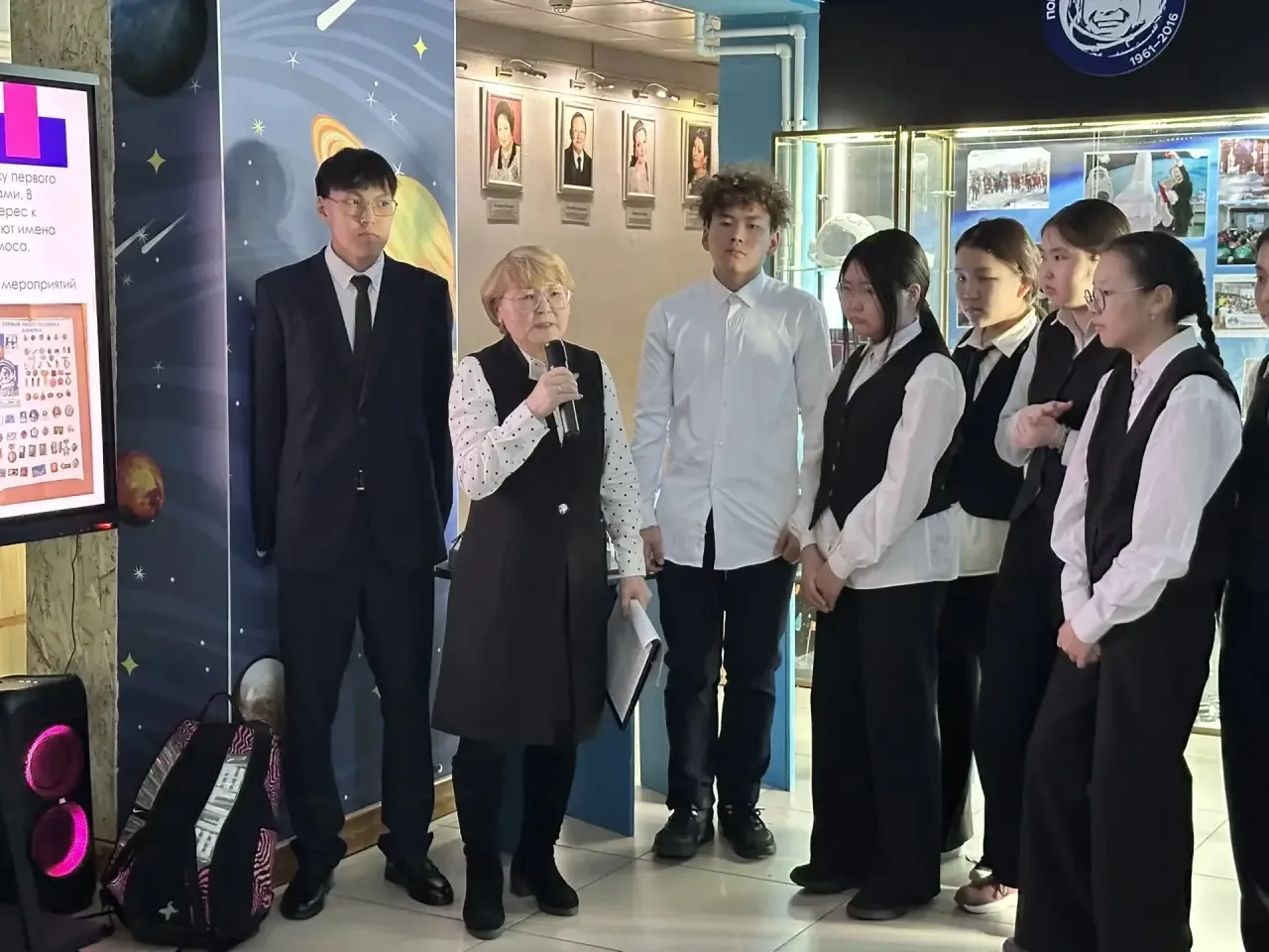Старшеклассники поделились исследованиями о космосе и работе школьной проектной площадки «Арктика и космос». Прозвучали стихи, мелодии космоса и живой голос Гагарина.