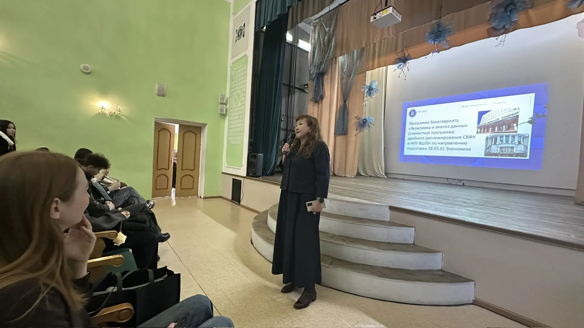 Сегодня 7 апреля была проведена профориентационная встреча учащихся 10-11 классов с директором ФЭИ СВФУ Набережной Анной Тимофеевной (выпускницей школы 1986 г) и преподавателем НИУ ВШЭ Таровик Еленой Викторовной.