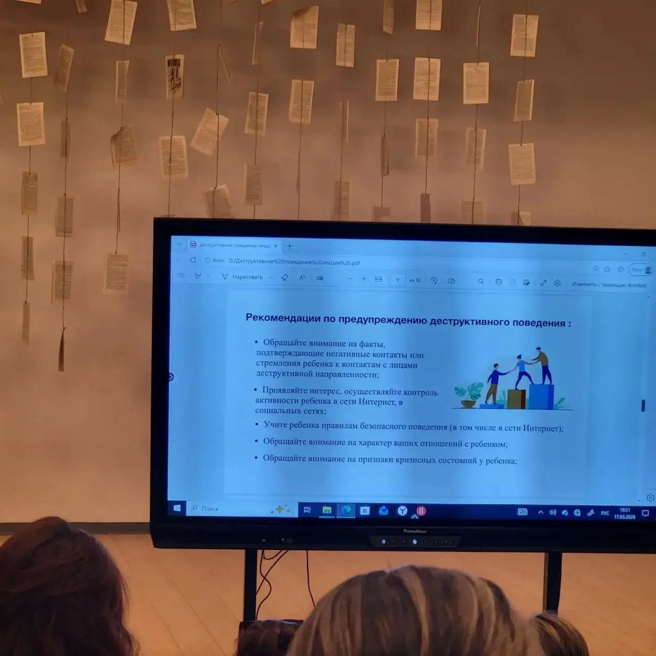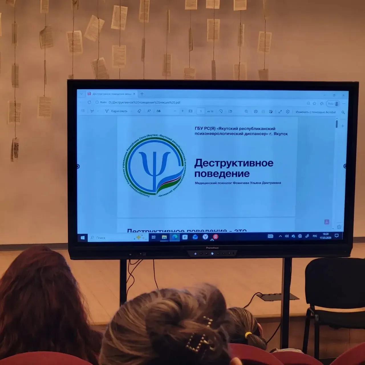 17 марта в нашей школе состоялось важное родительское собрание, посвященное теме деструктивного поведения. Лектором выступила медицинский психолог ЯРПНД Ульяна Дмитриевна Фомичева.