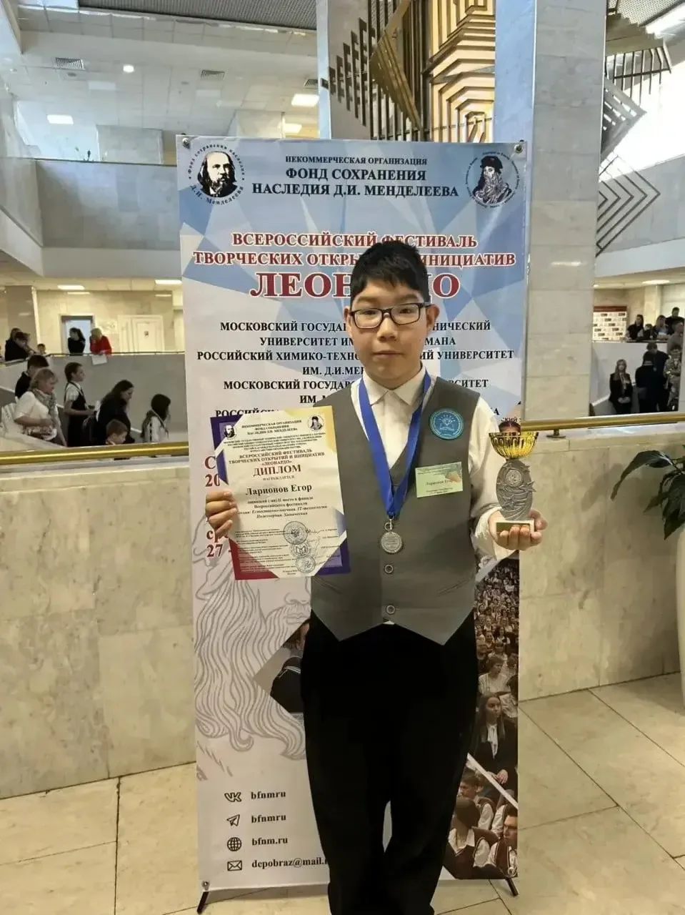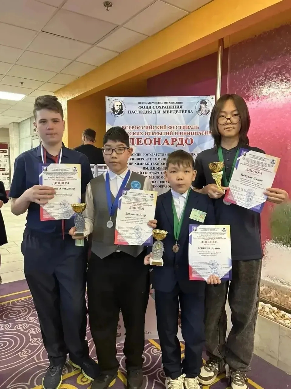 Поздравляем Ларионова Егора, ученика 7а класса и Тенигина Дениса ученика 4д класса нашей школы с заслуженными наградами на всероссийском фестивале творческих открытий и инициатив «Леонардо» в городе Москва! 🎉