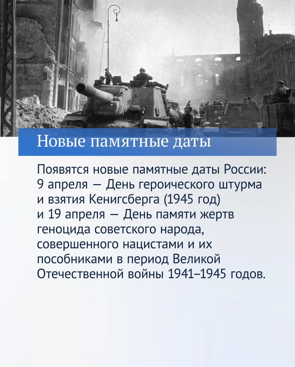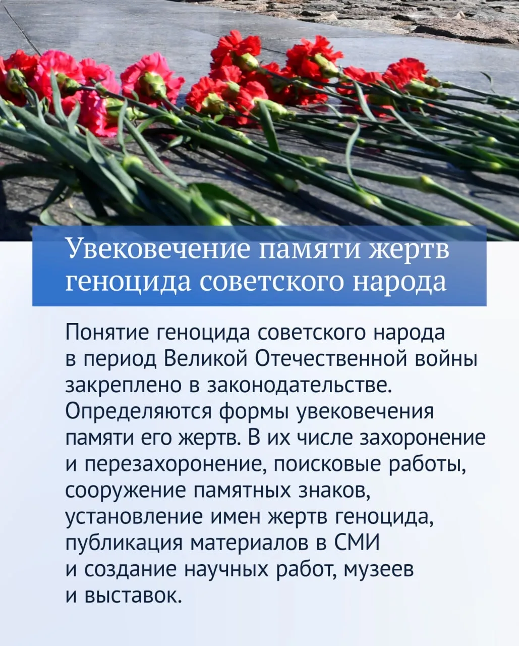 ✅ По словам Председателя Государственной Думы, в течение прошедшего года было принято восемь законов о сохранении и защите исторической памяти. Среди них — установление новых памятных дат России, ответственность за осквернение воинских захоронений и других мемориалов как в стране, так и за рубежом, увековечение памяти жертв геноцида советского народа, погибших от рук нацистов. «Важно противодействовать любым попыткам переписать историю и обесценить роль советского народа в разгроме фашизма, и работу эту надо проводить постоянно», — говорил Вячеслав Володин.
