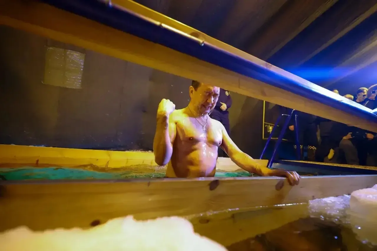 🔹 В городе Якутске чин великого освящения воды совершил архиепископ Якутский и Ленский Роман. После освящения купели на Зеленом лугу по сложившейся традиции первым в иордань окунулся Глава республики Айсен Николаев.