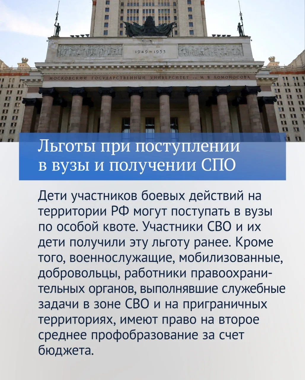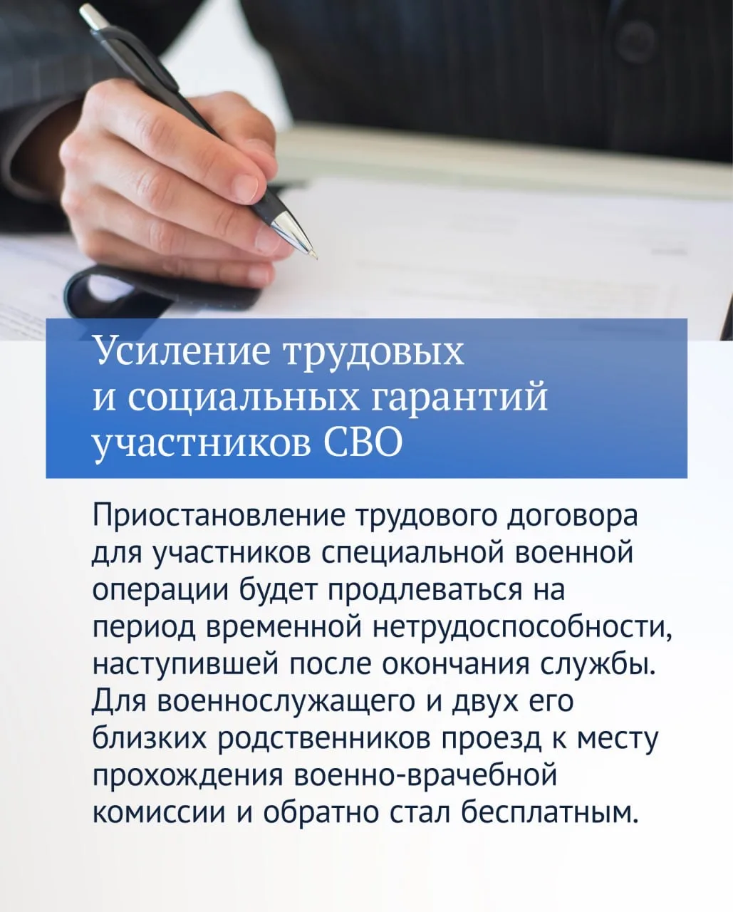 ✅ Председатель ГД подчеркивал: «Наш главный и безусловный приоритет — обеспечение специальной военной операции». В 2025 году было принято 30 законов, направленных на поддержку наших солдат и офицеров, их родных и близких, а всего с 2022 года — 154 закона в этой сфере. Расширен статус ветерана боевых действий. Упрощены присвоение воинских званий и назначение пенсий добровольцам. Для участников СВО появились новые льготы. «Наши воины, их семьи ни в чем не должны нуждаться. У нас этот вопрос на отдельном контроле», — отмечал Вячеслав Володин.