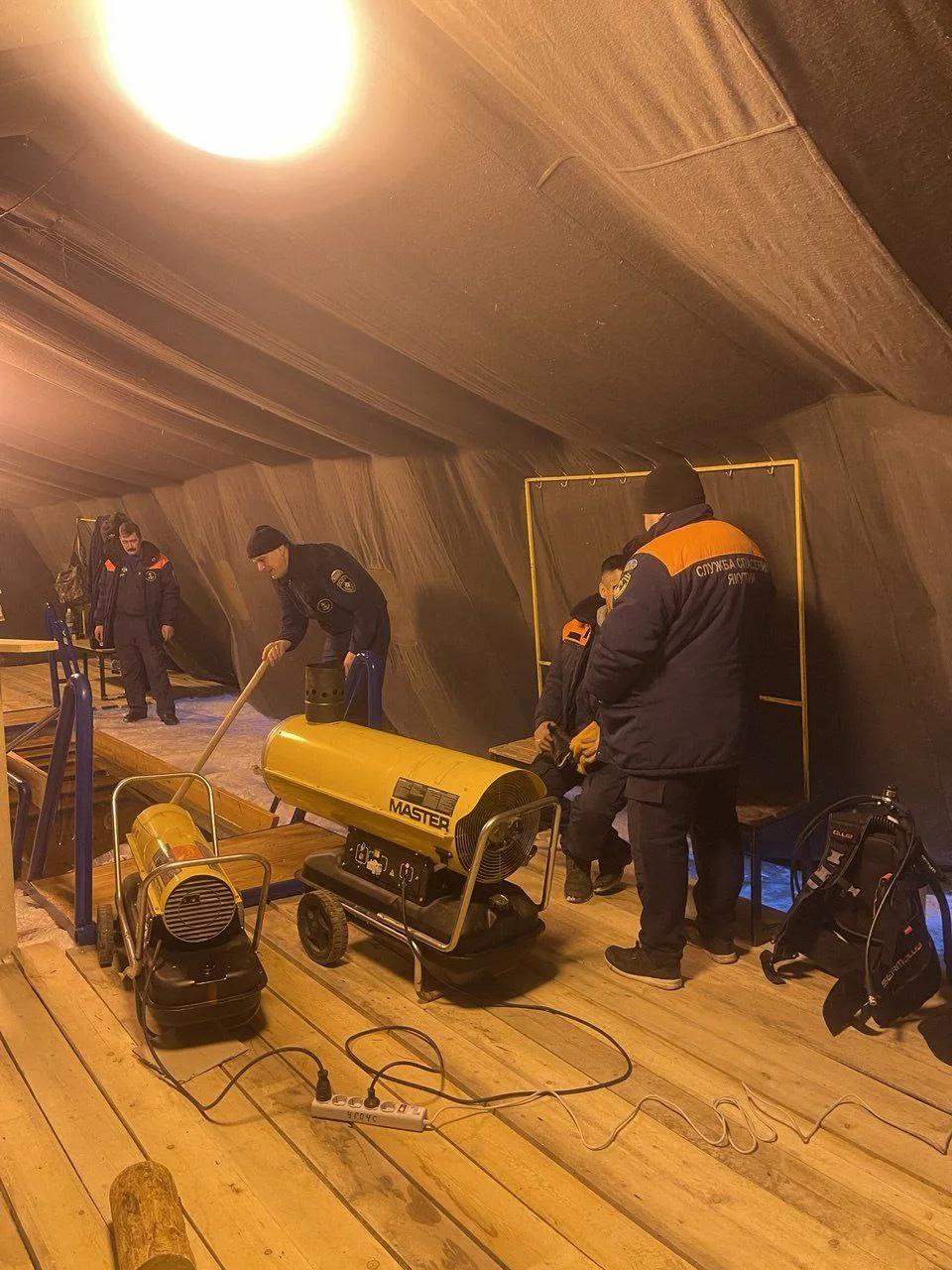 Сегодня, 17 января, в Якутске на Зеленом лугу спасатели и водолазы нашей Службы спасения Якутии приступили к обустройству центральной купели.