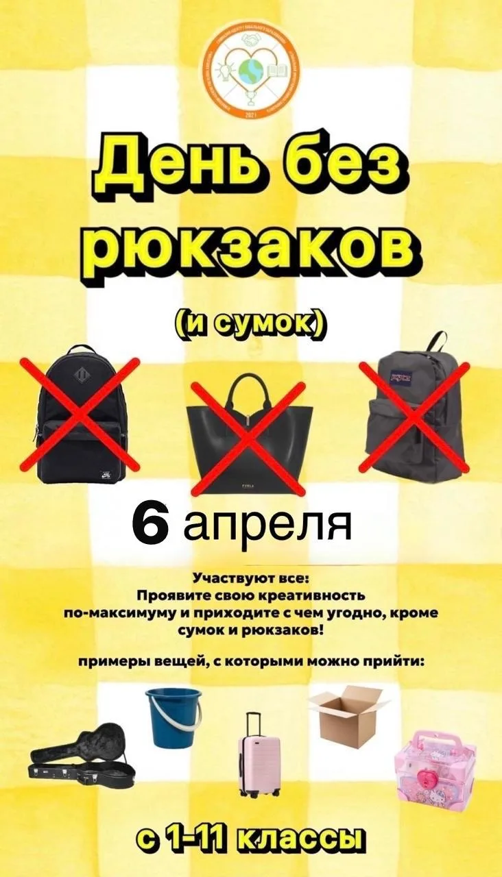 🎒🚫 День без рюкзаков — 6 апреля! 🚫🎒