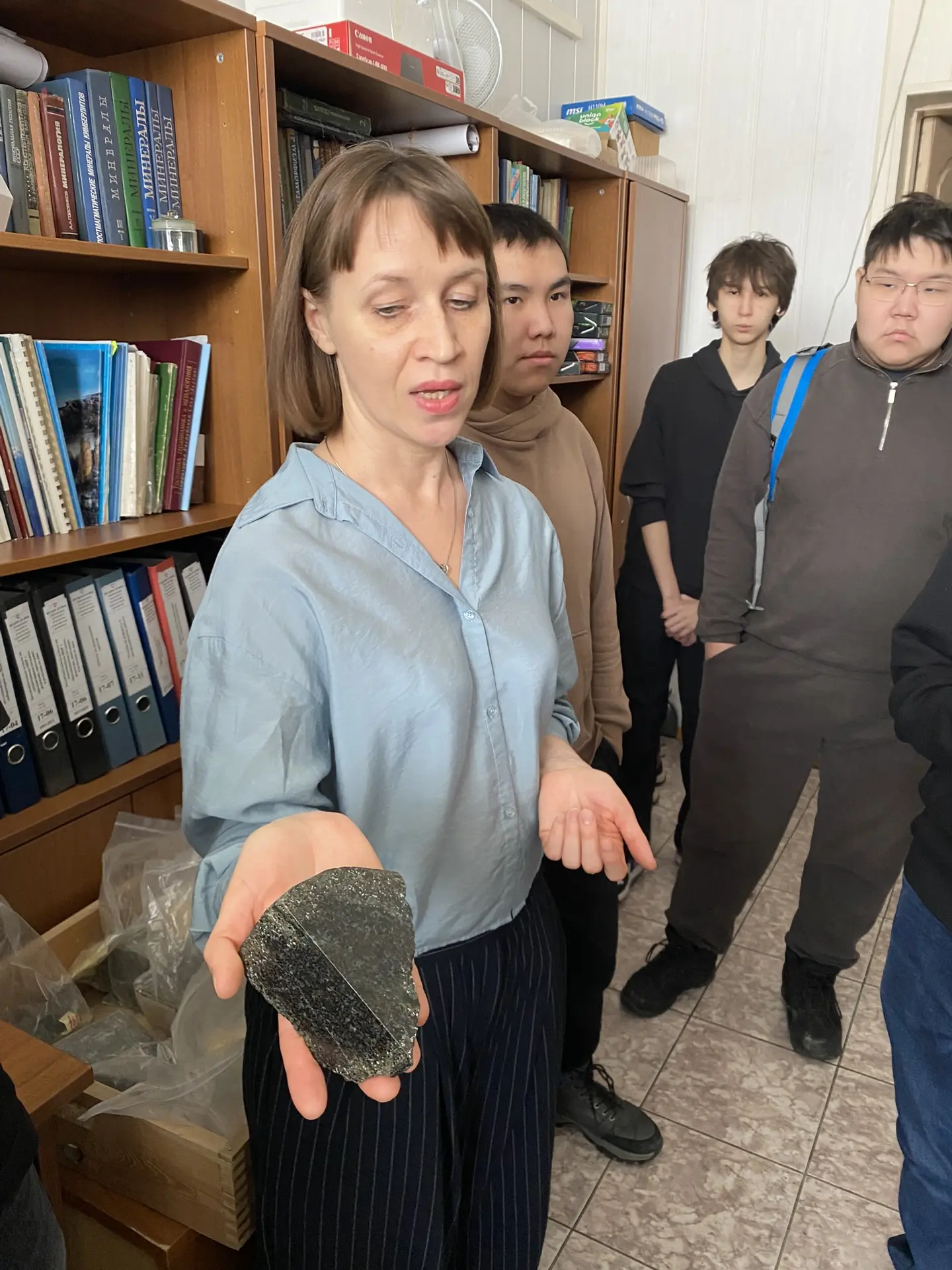 На весенних каникулах наш 10 Б класс вместе с классным руководителем Романом Владимировичем побывал в Институте геологии алмаза и благородных металлов. Ребята погрузились в настоящую научную атмосферу и прошли целый цикл знакомства с минералами и горными породами.
