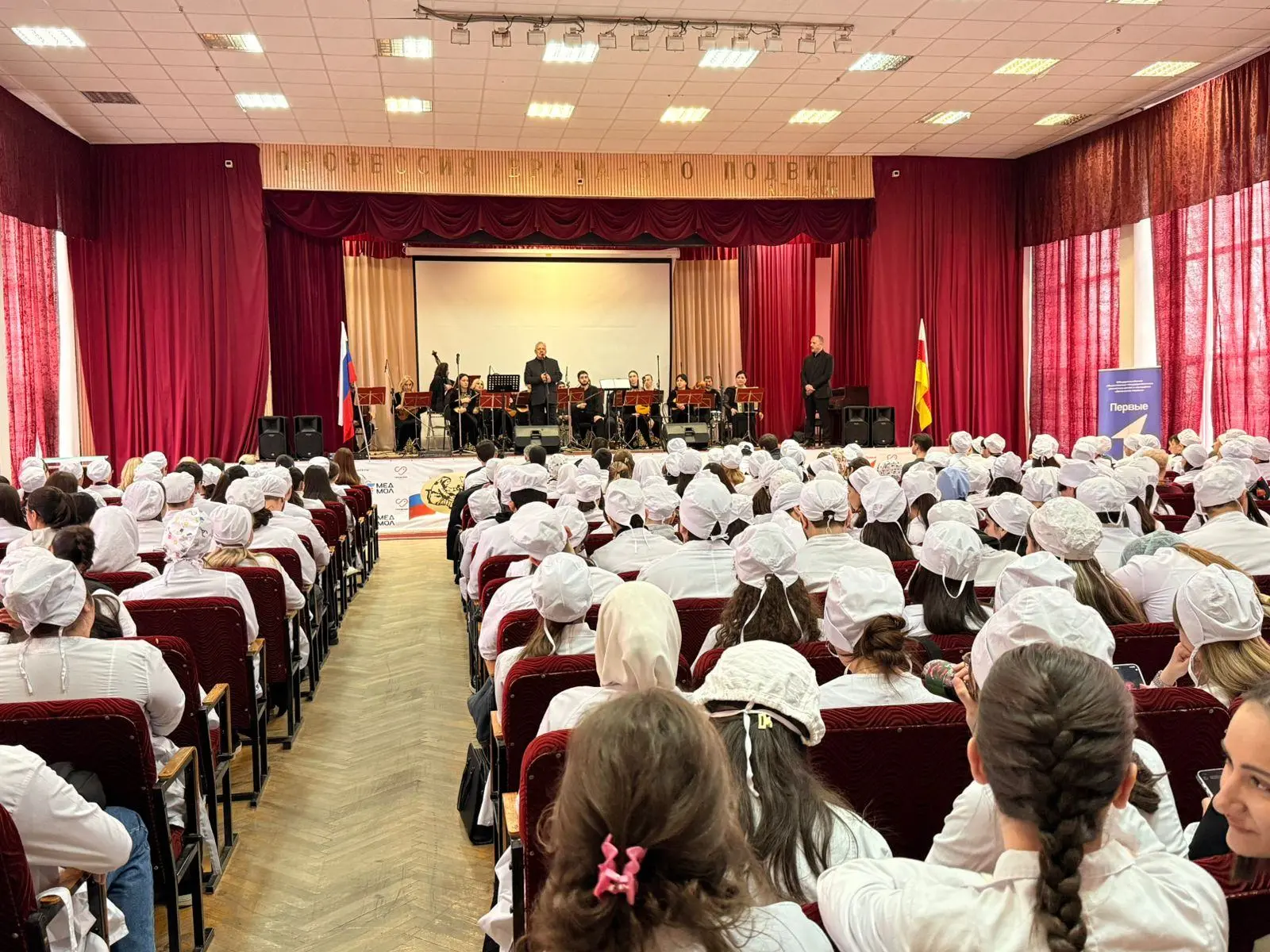 26 марта студенты медакадемии, благодаря «Пушкинской карте», и преподаватели вуза вновь имели возможность приобщиться к миру музыкального искусства, побывав на концерте Национального государственного оркестра народных инструментов им. Булата Газданова, уникального творческого коллектива, получившего в 2007 году почетное звание «Национальное достояние РСО-Алания».