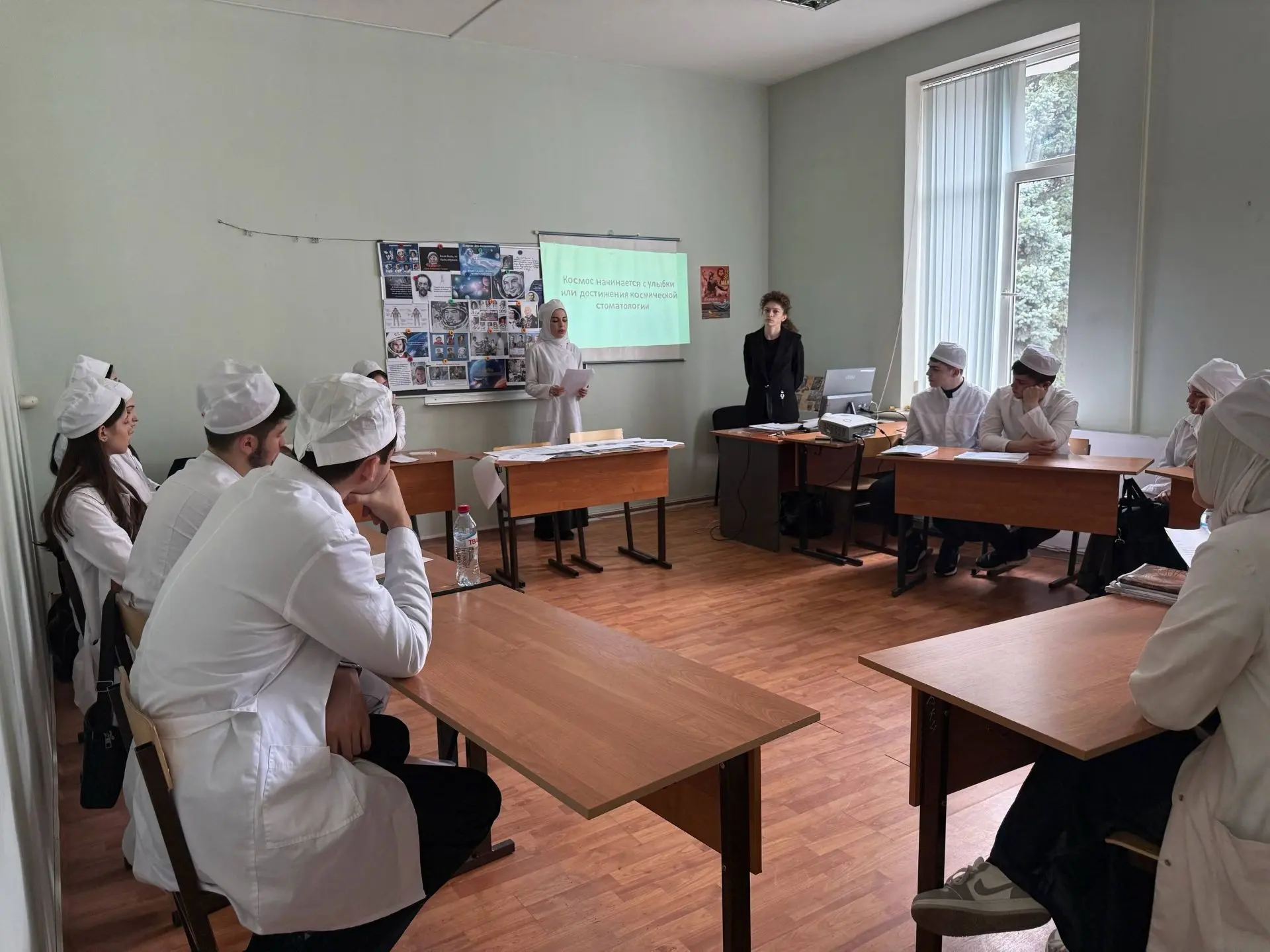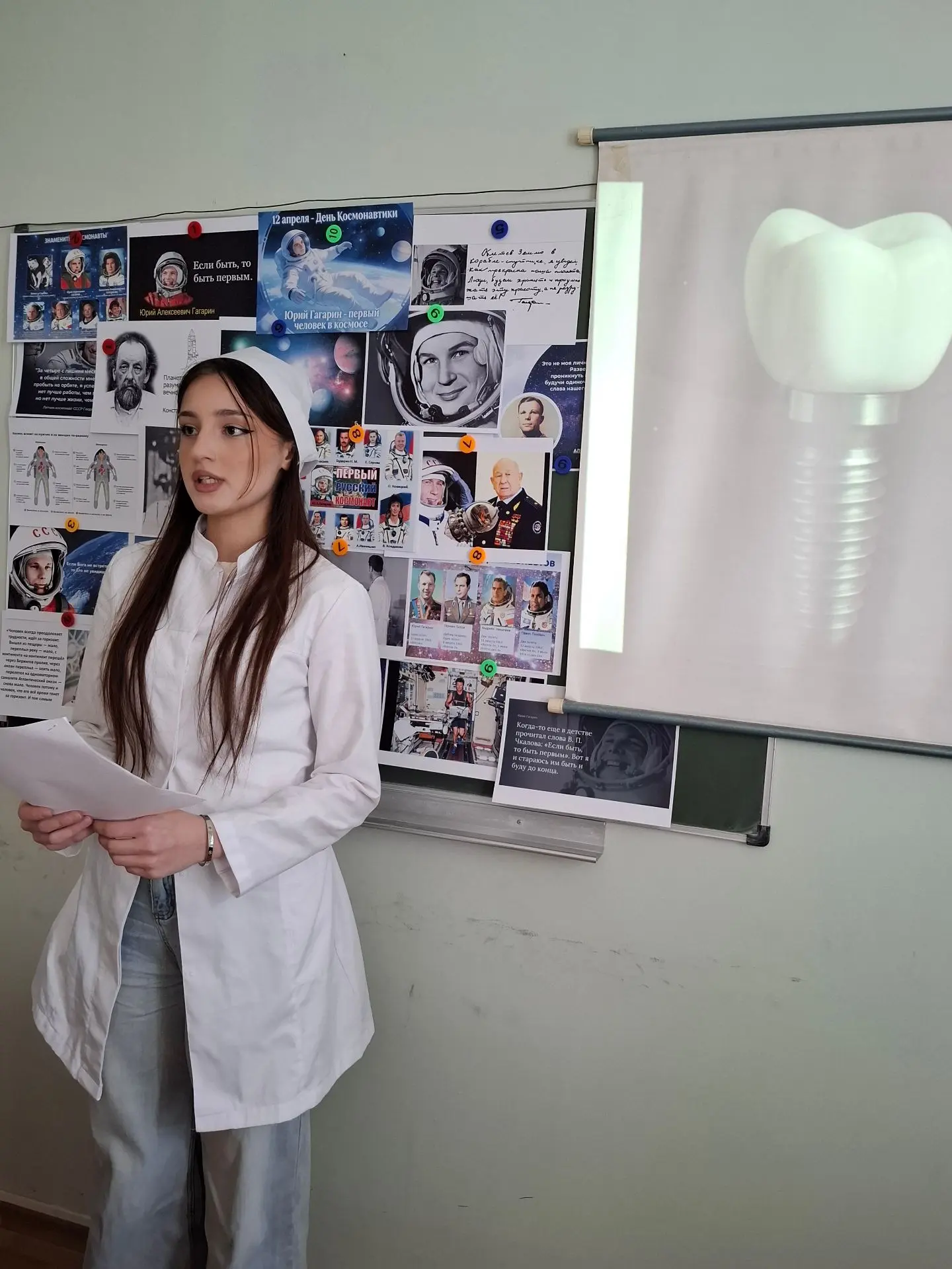 Разве мог представить 65 лет назад Юрий Алексеевич Гагарин, что своим знаменитым "Поехали!" даст старт не только освоению космоса, но и целым направлениям в современной науке, открывающим новые, поистине "космические" горизонты, в том числе в лечении людей. Сегодня, как узнали ребята из докладов однокурсников, "биопринтинг", "биофабрикация тканей", "сентинел-органы", "Корвит", "Регент" - это не фразы из фильма про научную фантастику, а вполне реальные медицинские технологии, заимствованные у космической отрасли. Много общего, как выяснили ребята, у космоса и с их любимой стоматологией: это и космические материалы для изготовления искусственных корней зубов, коронок, и космические технологии 3D-моделирования, внедряемые при реставрации и протезировании зубов, и роботы-стоматологи с ИИ, и самовосстанавливающиеся покрытия для эмали зубов на основе наногелей, и протоколы телестоматологии, и многое другое. Тем хватит на целую научную конференцию!