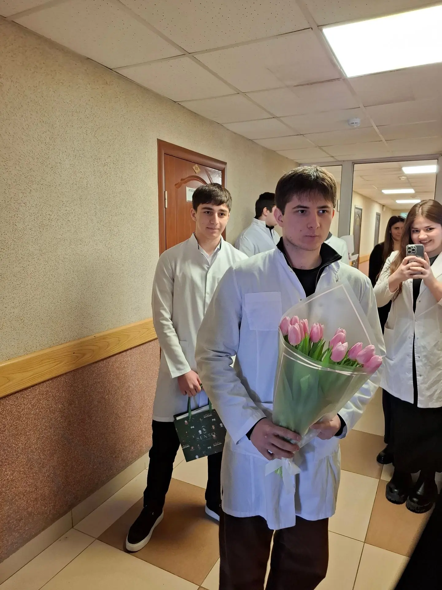 6 марта студенты 3 курса лечебного факультета поздравили Ирину Георгиевну с первым весенним праздником. В республиканской национальной научной библиотеке, где нас встретили поэтесса и персонал, царила особая атмосфера, которая способствовала душевному расположению. Это было связано и с особенностями интерьера, и с тем, что, на наше удивление, Ирина Георгиевна сыграла нам на рояле много музыкальных пронзительных произведений. В ответ студентки Калоева Кристина, Хосонова Алена, Канукова Елизавета, Кокоева Диана, Хутиева Мелисса и Бестаева Валерия прочитали стихи Ирины Георгиевны. Она очень внимательно, с замиранием сердца слушала будущих врачей, всматриваясь в их лица, создавая образы, в которых сквозь наружное просвечивает глубина мысли каждого!