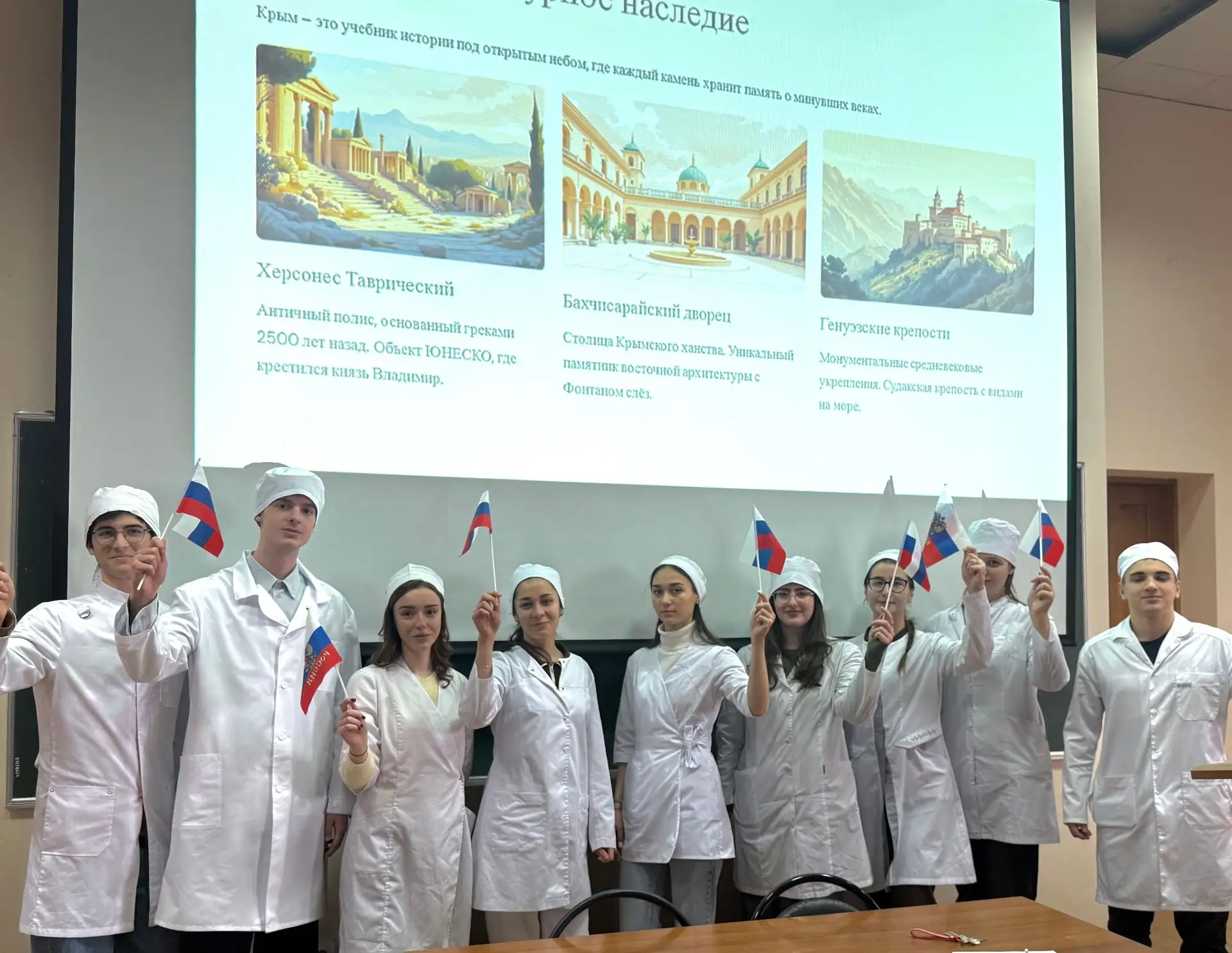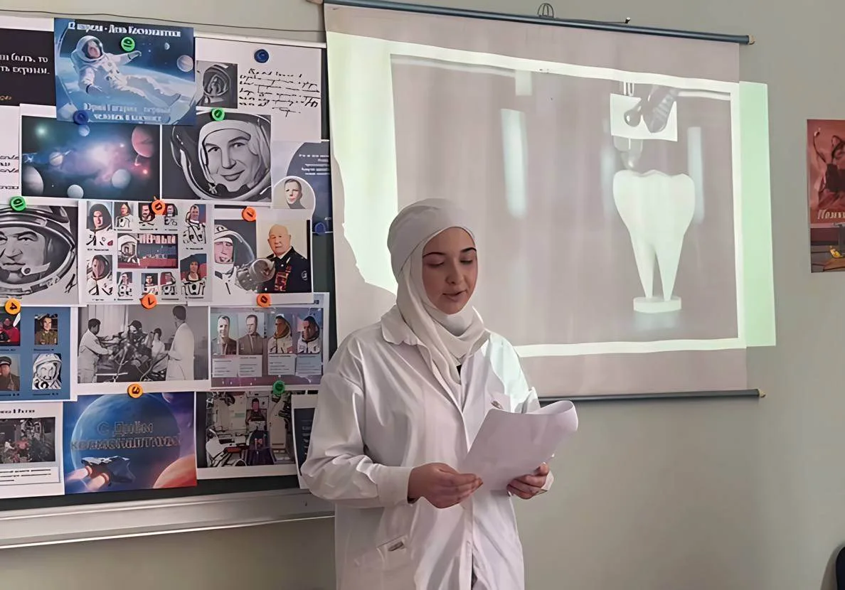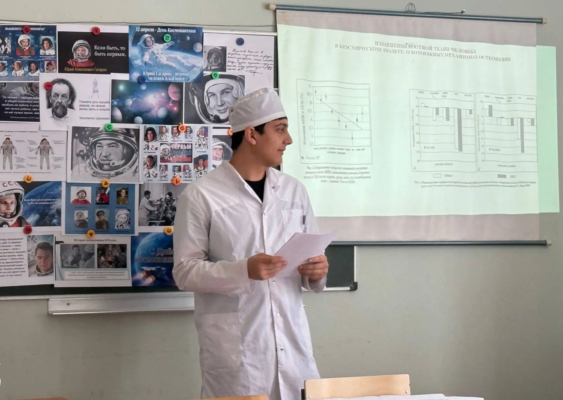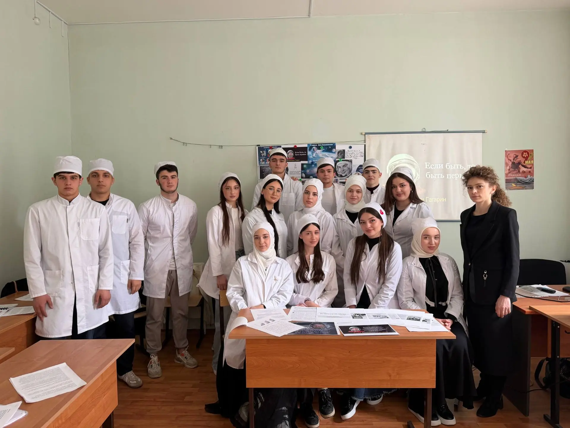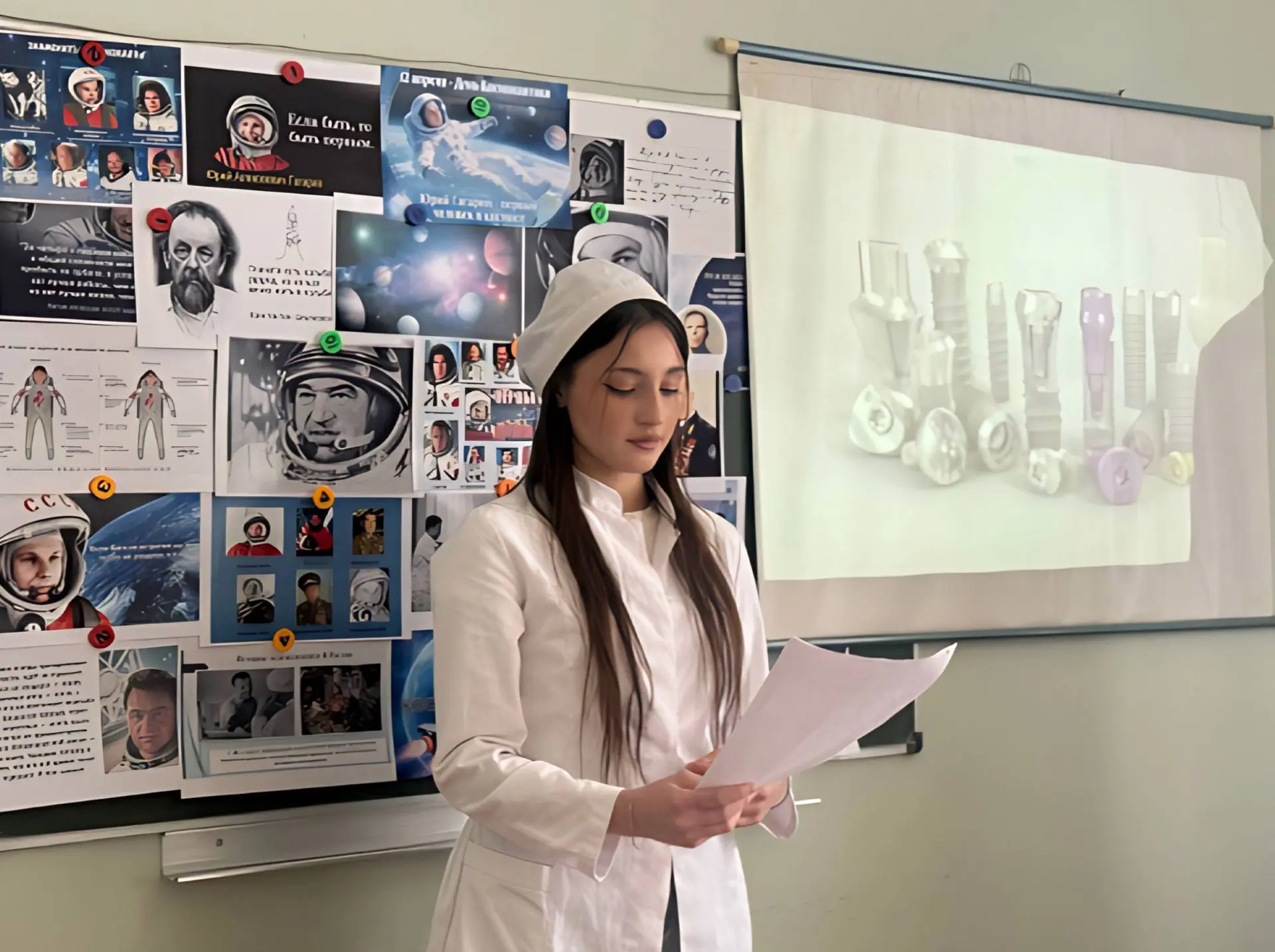 Студенты третьего курса подготовили цикл докладов, охватывающих историю космонавтики и вклад ученых, заложивших ее научные основы: К.Э. Циолковского, Ф.А. Цандера, Ю.В. Кондратюка, У. Оберта. Вниманию аудитории были представлены малоизвестные факты из жизни академика С.П. Королева и Ю.А. Гагарина. Значительное внимание докладчики уделили современному состоянию и перспективам развития российской космонавтики. В ходе выступлений было подчеркнуто, что Российская Федерация сохраняет статус одной из ведущих космических держав, последовательно развивая новые проекты и технологии. Слушатели ознакомились с актуальными планами по исследованиям Луны и Марса, созданию перспективных космических аппаратов, а также с ролью России в международном сотрудничестве в космическом пространстве. Отдельным предметом исследования студентов Бекоевой Д. и Назанин стала связь имени первого космонавта Земли с именем нашего земляка Ахмата Гассиева. Докладчики отметили, что А. Гассиев возглавлял одну из поисковых групп, осуществлявших поиск и эвакуацию Ю.А. Гагарина после его приземления на парашюте. Именно А. Гассиеву космонавт №1 первым доложил об успешном завершении полета, а также от него принял известие о присвоении ему звания майора.