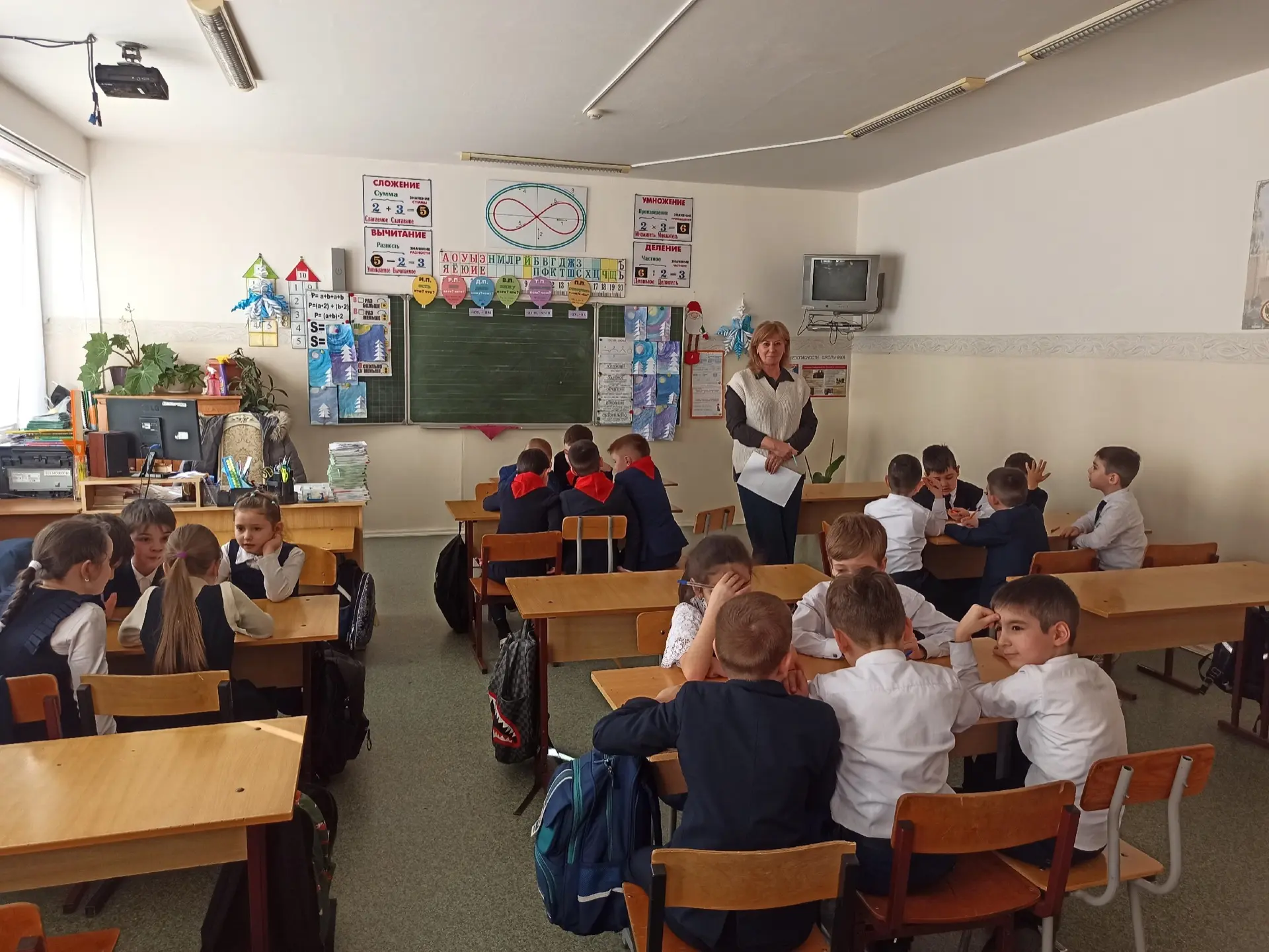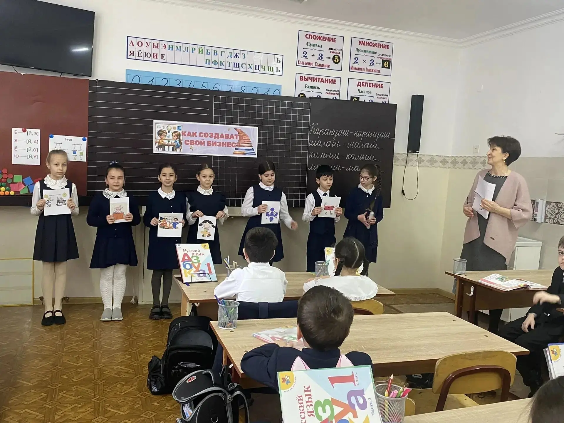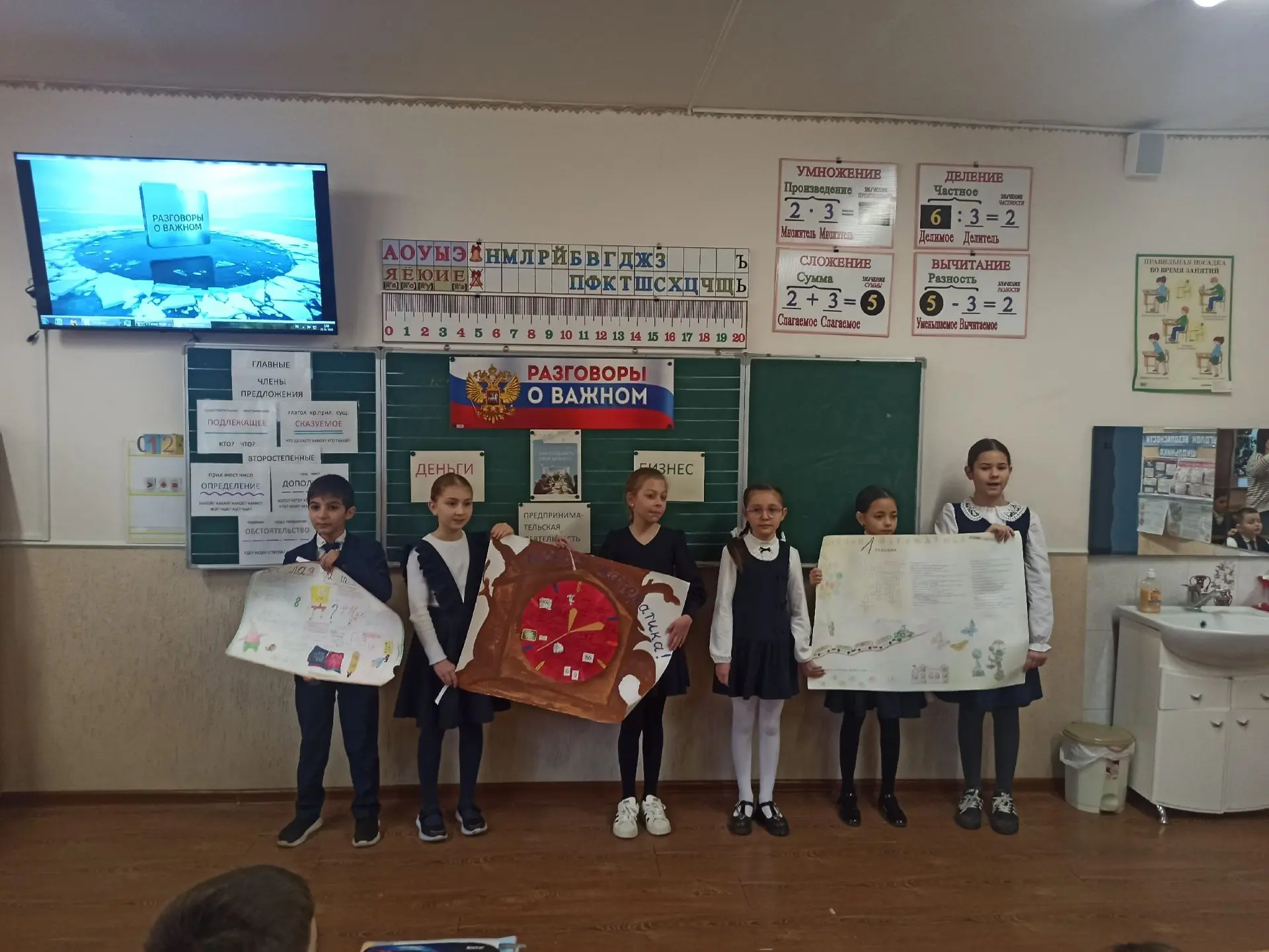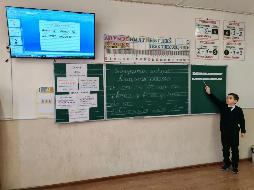Урок начался с пословицы: «Математику учить — ум точить» 🧠💡. Ребята активно занимались устным счётом, решали интересные задачи и примеры 🧮✅. Ученики работали как самостоятельно, так и в парах 🤝👫.