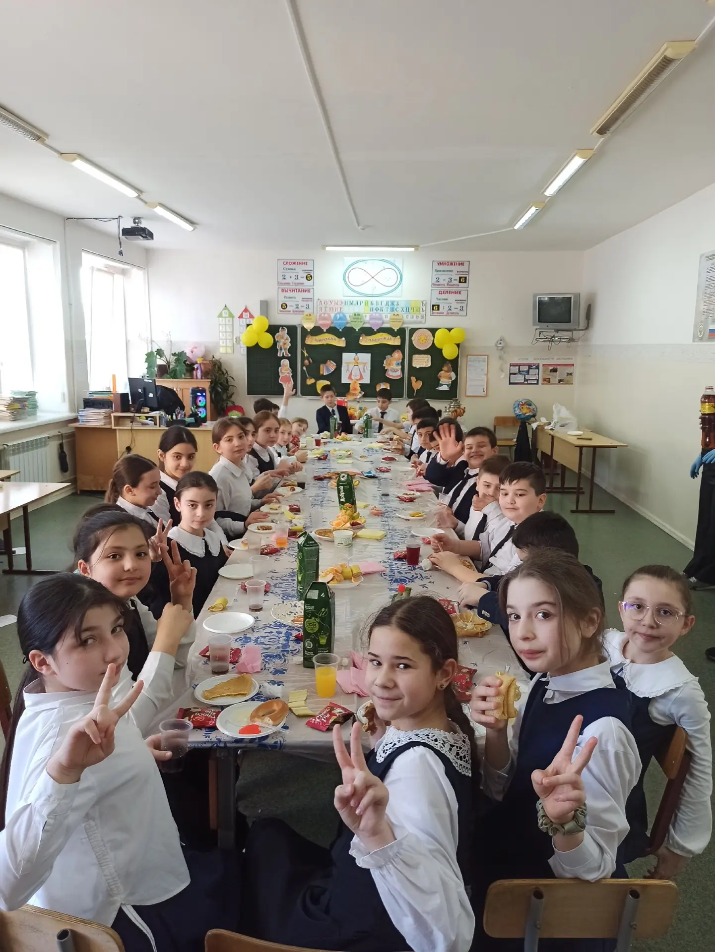 В этом году в классах прошли настоящие масленичные гуляния, и ребята проявили себя настоящими мастерами блинов! 🥞 Дети с аппетитом ели блины — от классических с вареньем до самых неожиданных с творогом и ягодами. 😋 Учителей тоже не забыли — щедро угощали, чтобы зарядить их энергией на весь учебный день! 🍎📚