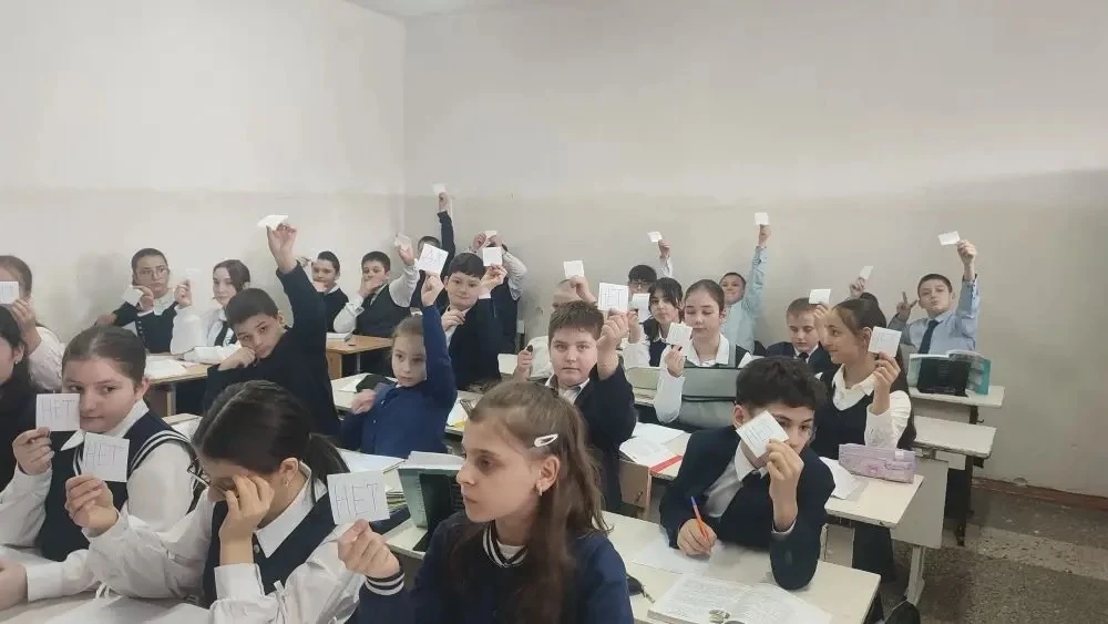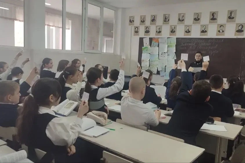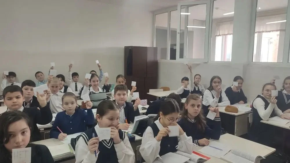 📚 На уроке литературы в 5 "В" классе ребята сыграли в интеллектуальную игру "Да/Нет"! 🧐 Каждый получил карточки с ответами "Да" или "Нет". Учитель русского языка и литературы Тавитова Л.В. задавала вопросы по рассказу, а ученики быстро реагировали карточками ✅❌. После игры они сверяли ответы с соседями, исправляя ошибки и обсуждая правильные решения. 🤝