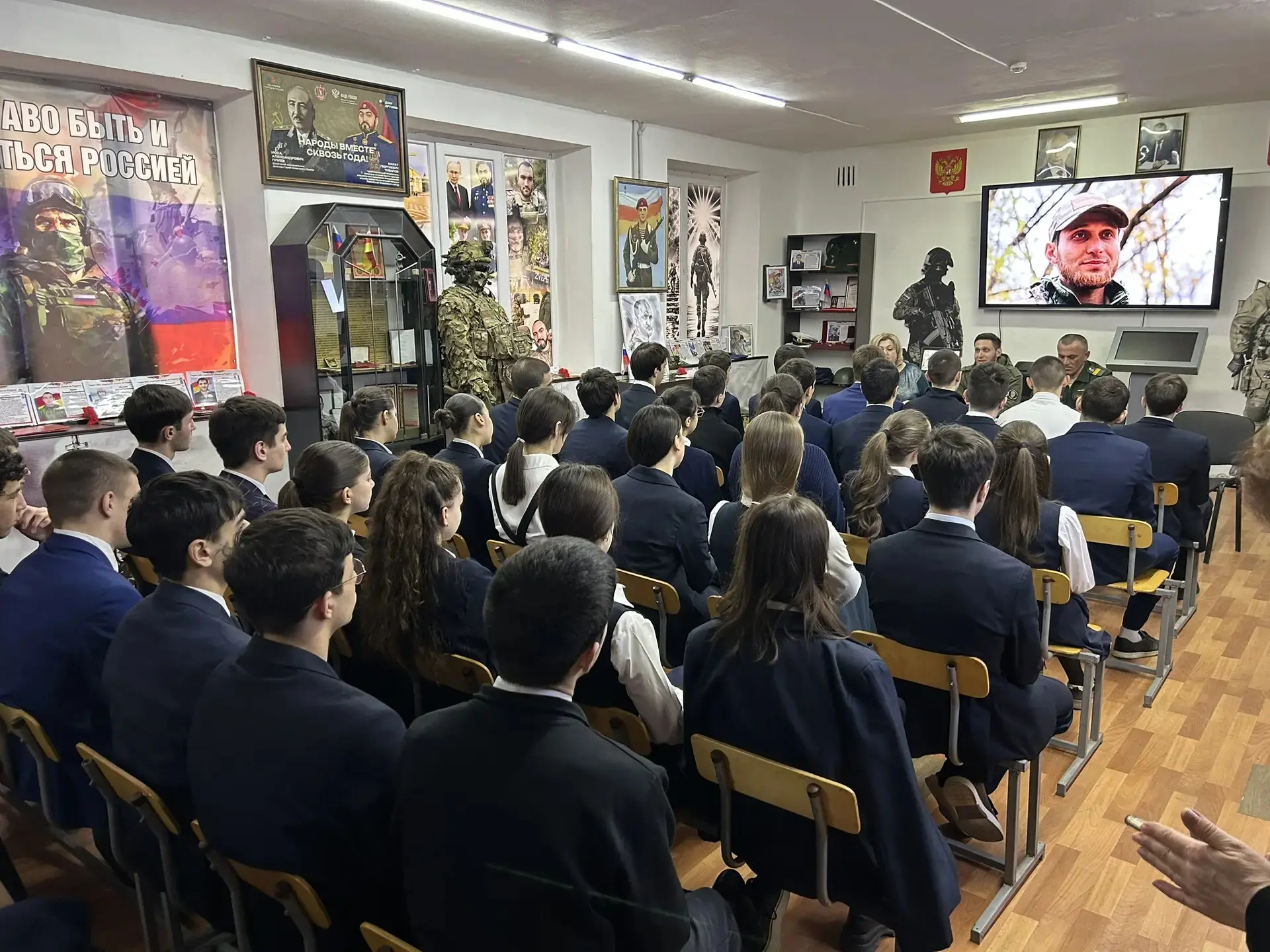 Завершилось мероприятие посещением школьного музея Боевой Славы, который был создан в 2020 году. В музее представлены военно-документальные экспонаты со времён Великой Отечественной войны и до наших дней.