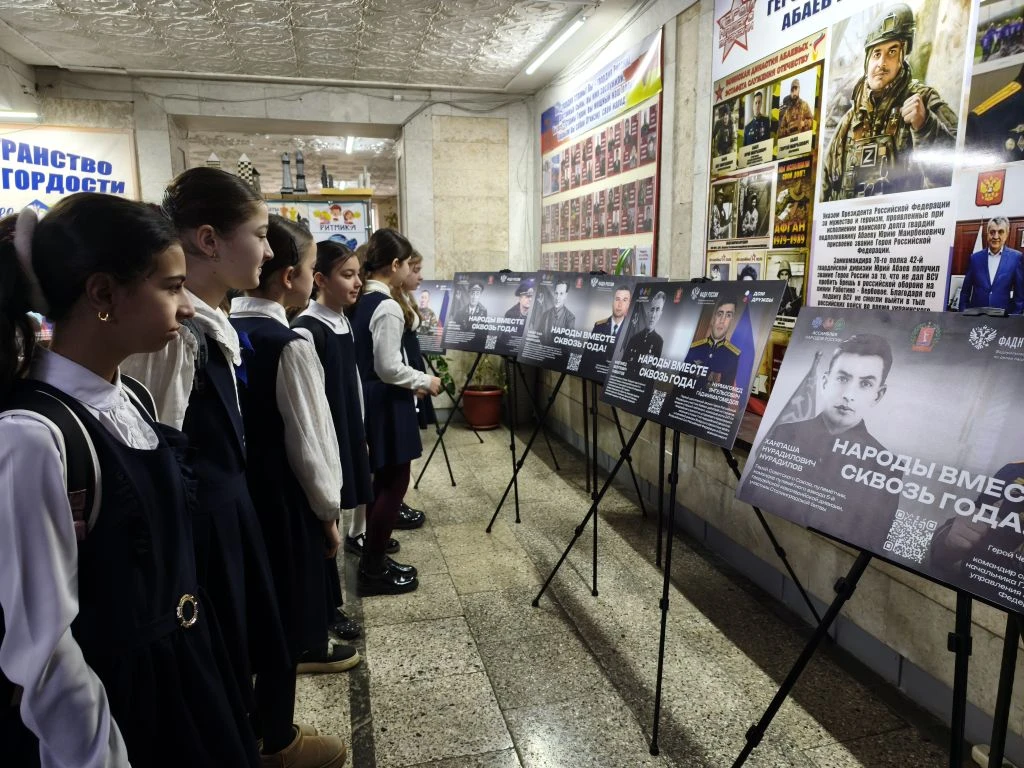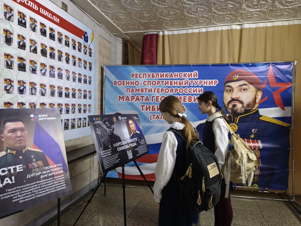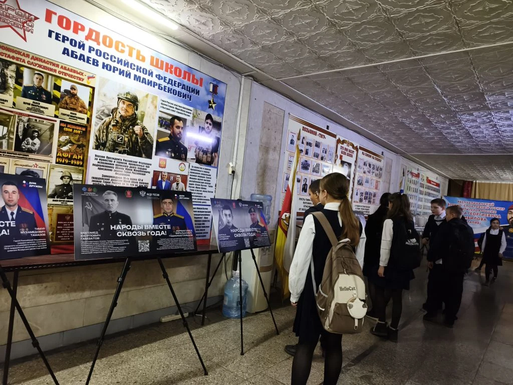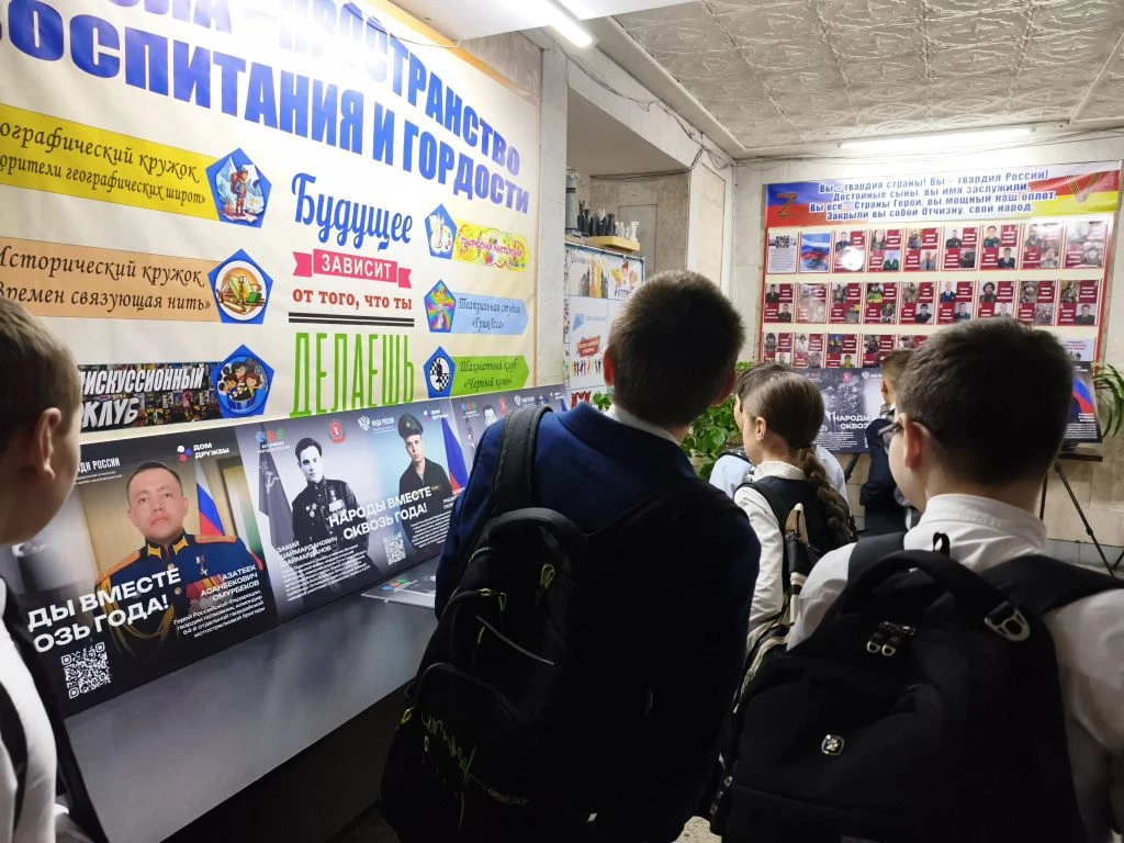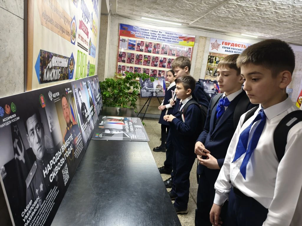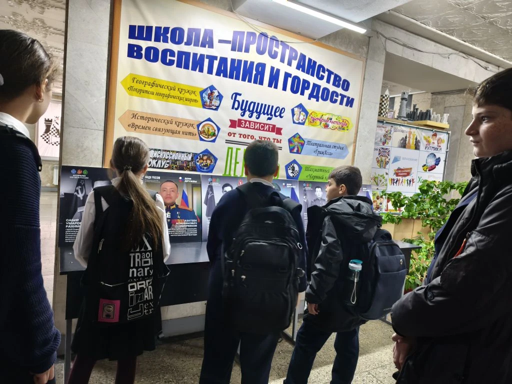 Учащиеся школы подготовили концертную программу. А в холле учебного заведения была представлена выставка «Герои Отечества» художника Михаила Чернова. В экспозиции – портреты героев СВО.