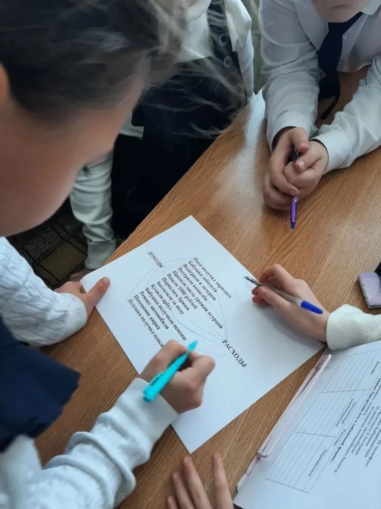 Мы посмотрели и поработали с презентацией 📽️, а потом провели групповую игру — разделяли доходы и расходы, используя примеры на листах 📝🤝.