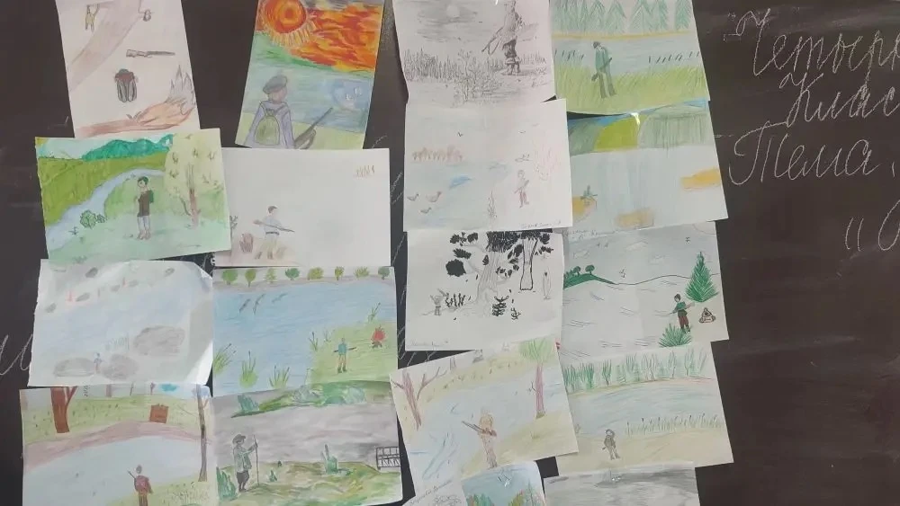 Потом началась творческая часть: многие подготовили рисунки, иллюстрирующие ключевые моменты рассказа 🎨✨. Ребята выбрали самые яркие эпизоды — лесные приключения Васютки 🌲🐾, встречу с утками 🦆, путешествие по тайге 🌿 и выход к озеру 🌅.
