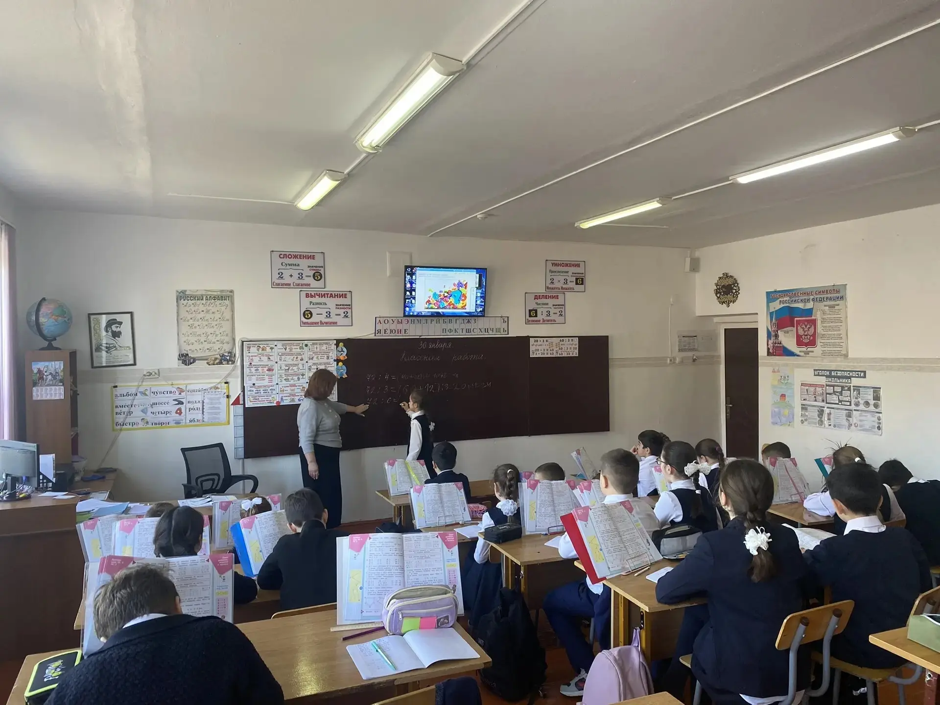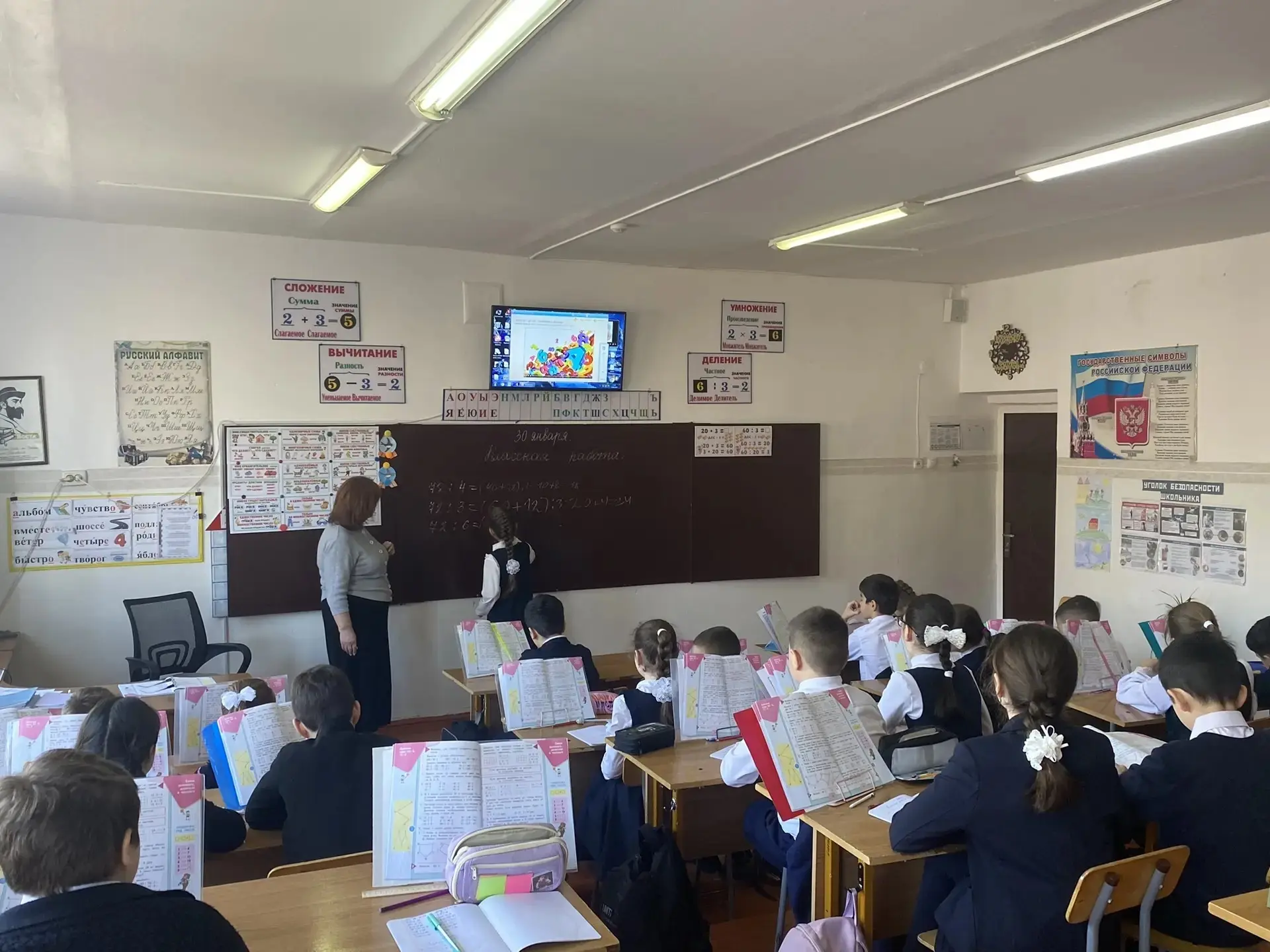 📅 30 января в рамках Недели математики в 3 «Д» классе под руководством Дсусовой Ф. М. прошёл открытый урок на тему: «Деление вида 69:3, 78:2» ➗🔢.