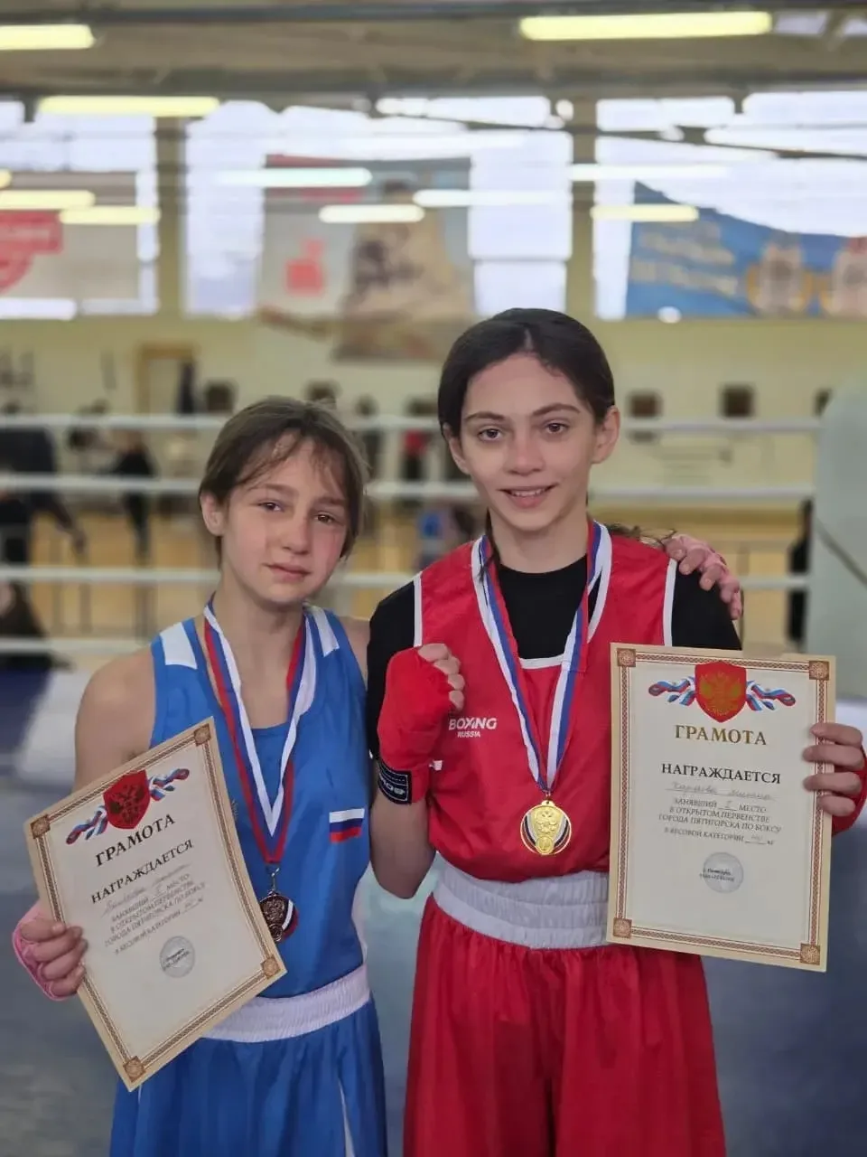 Караева Милана из 7 «Д» класса стала победительницей — 1 место на Открытых первенствах г. Пятигорска по боксу среди начинающих спортсменов! 🥊🏆 Браво, Милана!